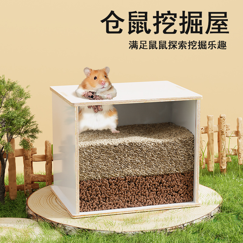 ハムスター木製アクリル掘削箱砂盆金糸熊深削断コルク粒吸湿造景用品