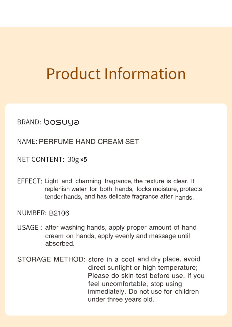 【対外貿易限定】Bosuya フレグランスハンドクリーム 5袋入り ハンドクリームセット 保湿・保湿 卸売