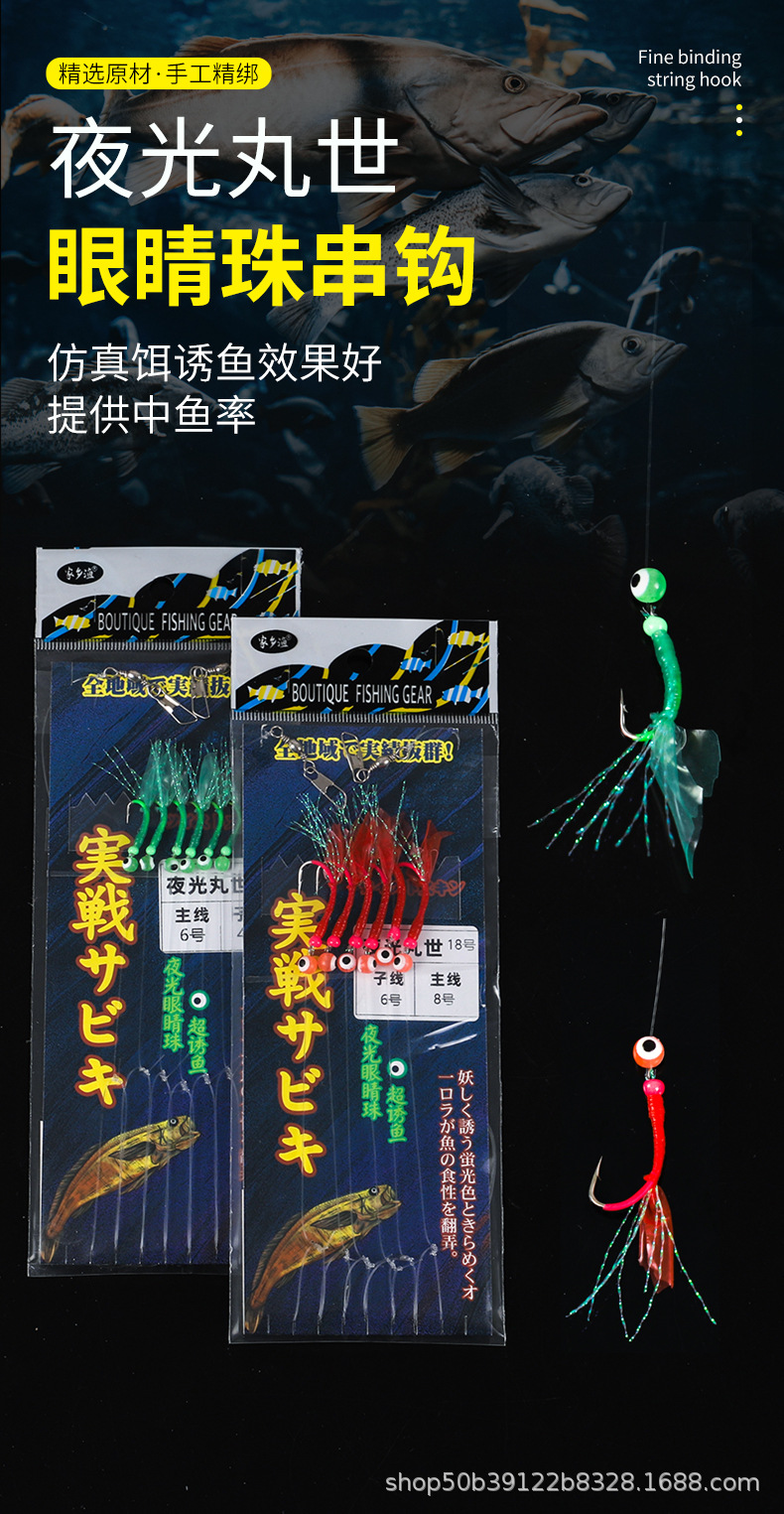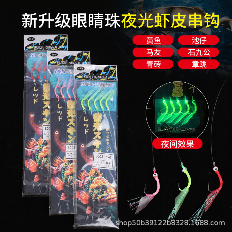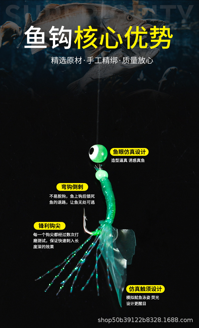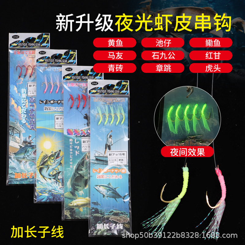 眼睛珠夜光黄鱼串钩加长子线海钓船钓黄鸡马友章跳5本南极虾钓组