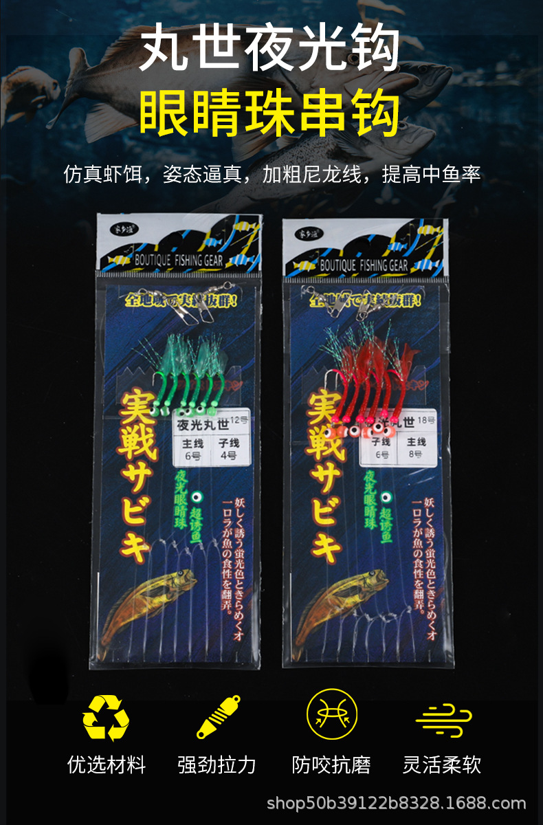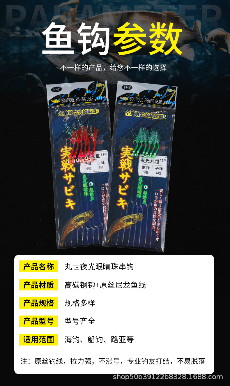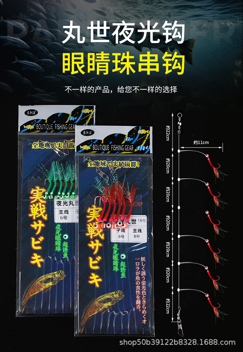 眼睛珠夜光黄鱼串钩加长子线海钓船钓黄鸡马友章跳5本南极虾钓组