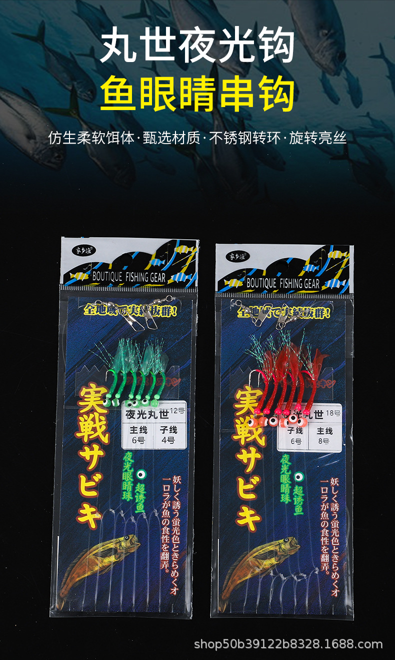 家乡渔夜光膜夜光钩串钩带鱼眼珠串钩淡海水通用海钓船钓钩鲅鱼