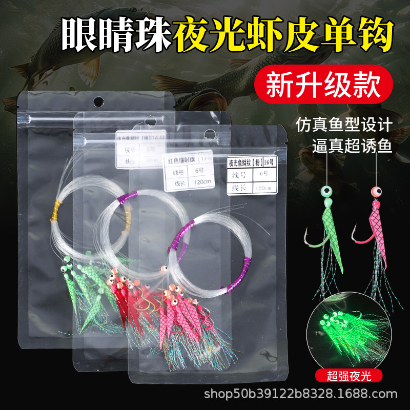 带鱼眼珠夜光鱼鳞纹黑头黄鱼虾皮单钩带子线1.2米海钓船钓鱼皮钩