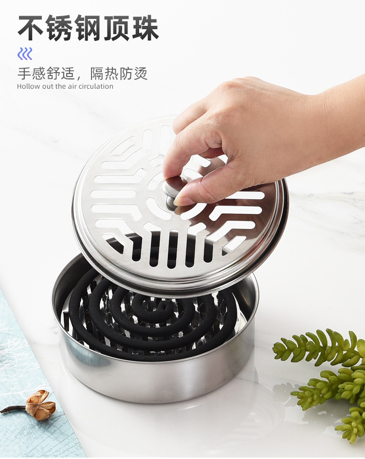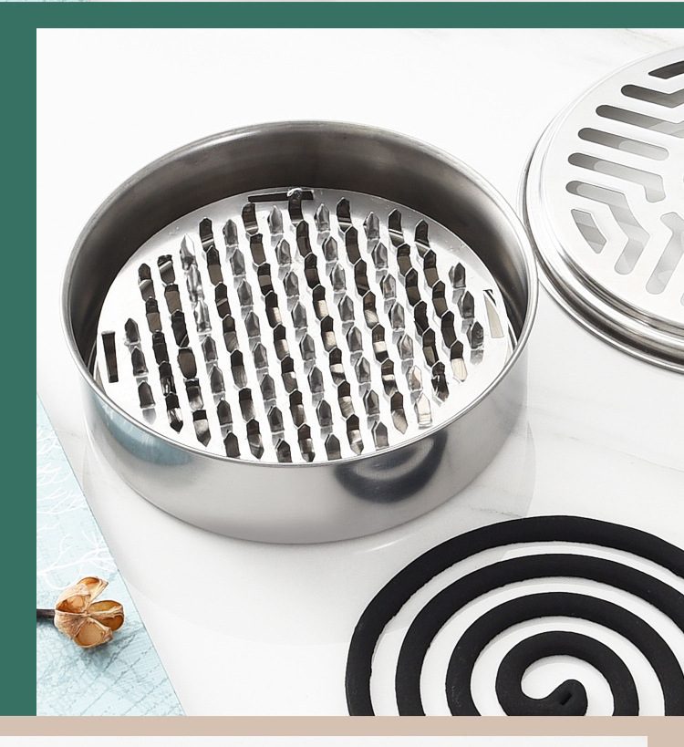 ステンレス製蚊取りボックス家庭用防火カバー付き灰トレイスタンド室内屋外便利蚊取り器アロマスタンド