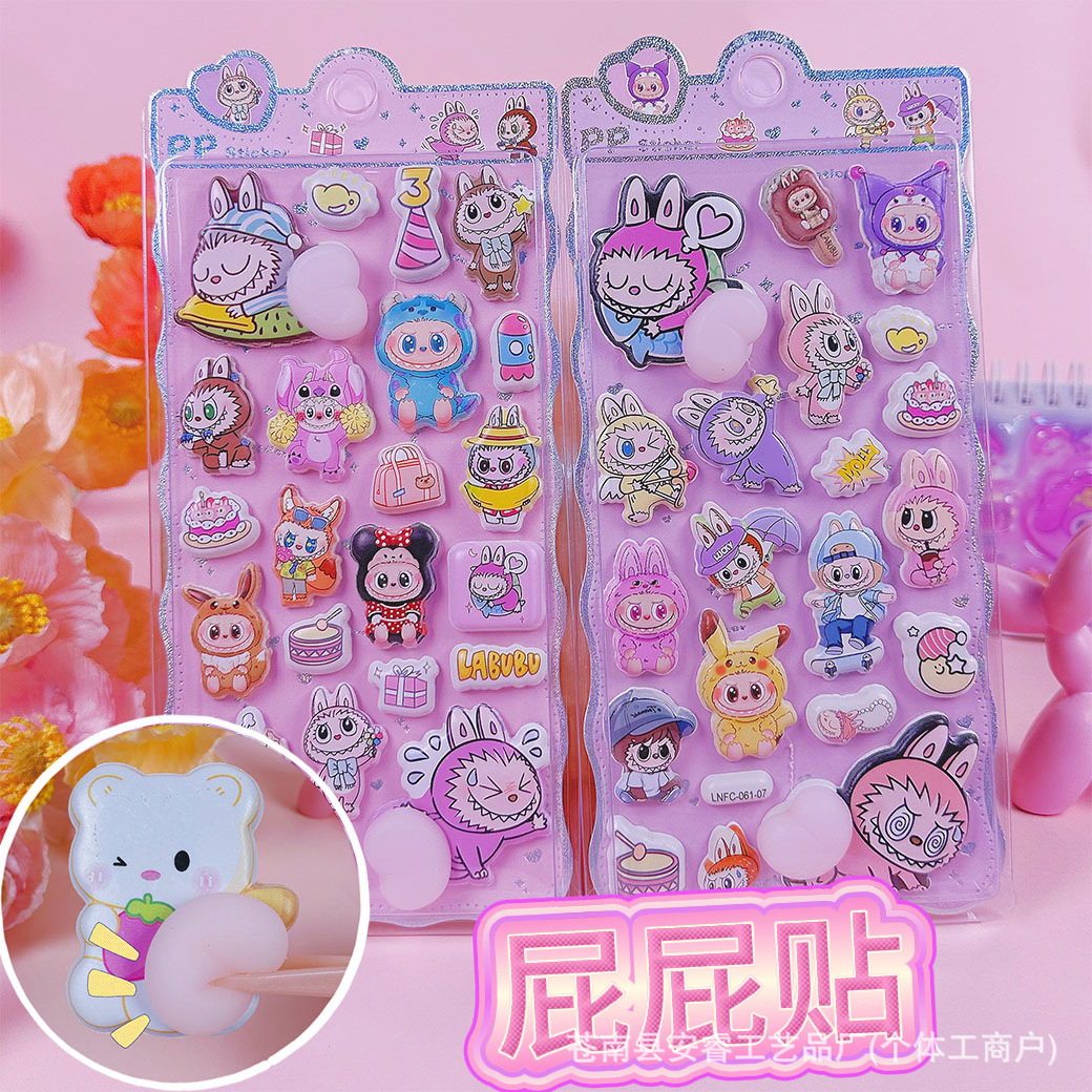 卡通解压屁屁贴立体贴纸儿童3d立体果冻贴纸女孩无毒无味粘贴画浮