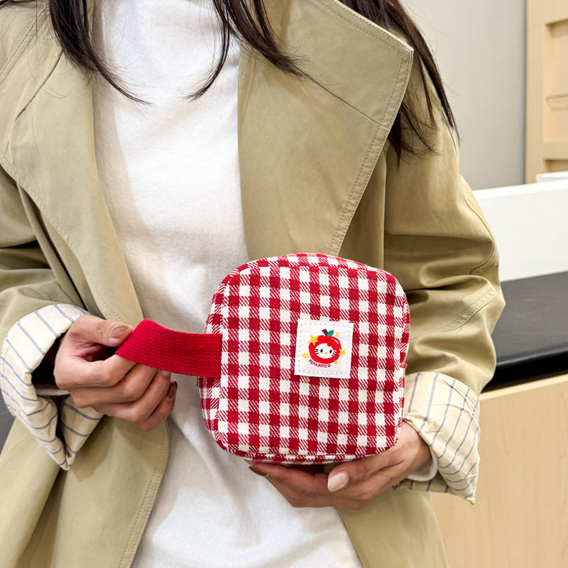 新款格子拍立得收纳包可爱手提便携大容量kitty正方形随身化妆包