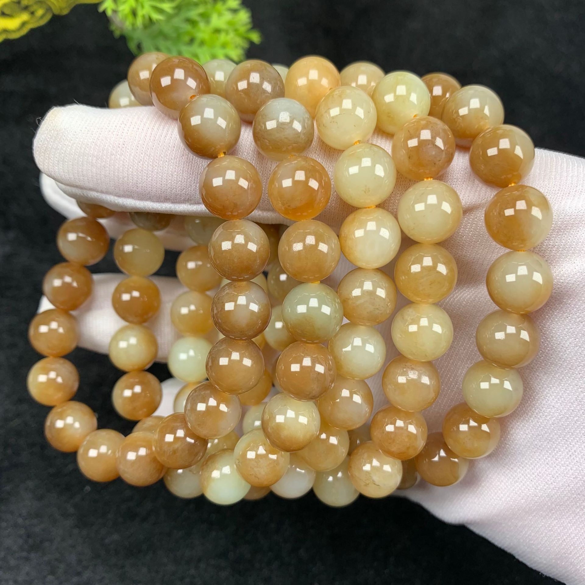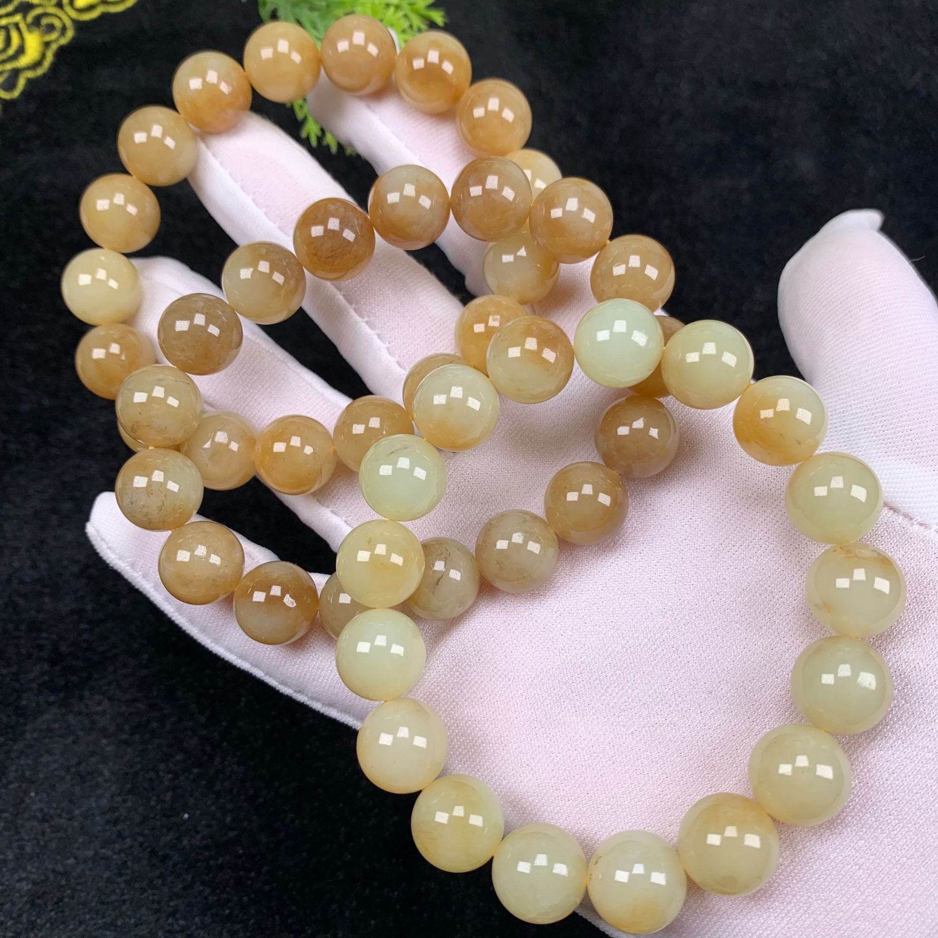 批发直供天然和田玉且末糖半边糖圆珠手串10mdiy配珠糖料糖白手链