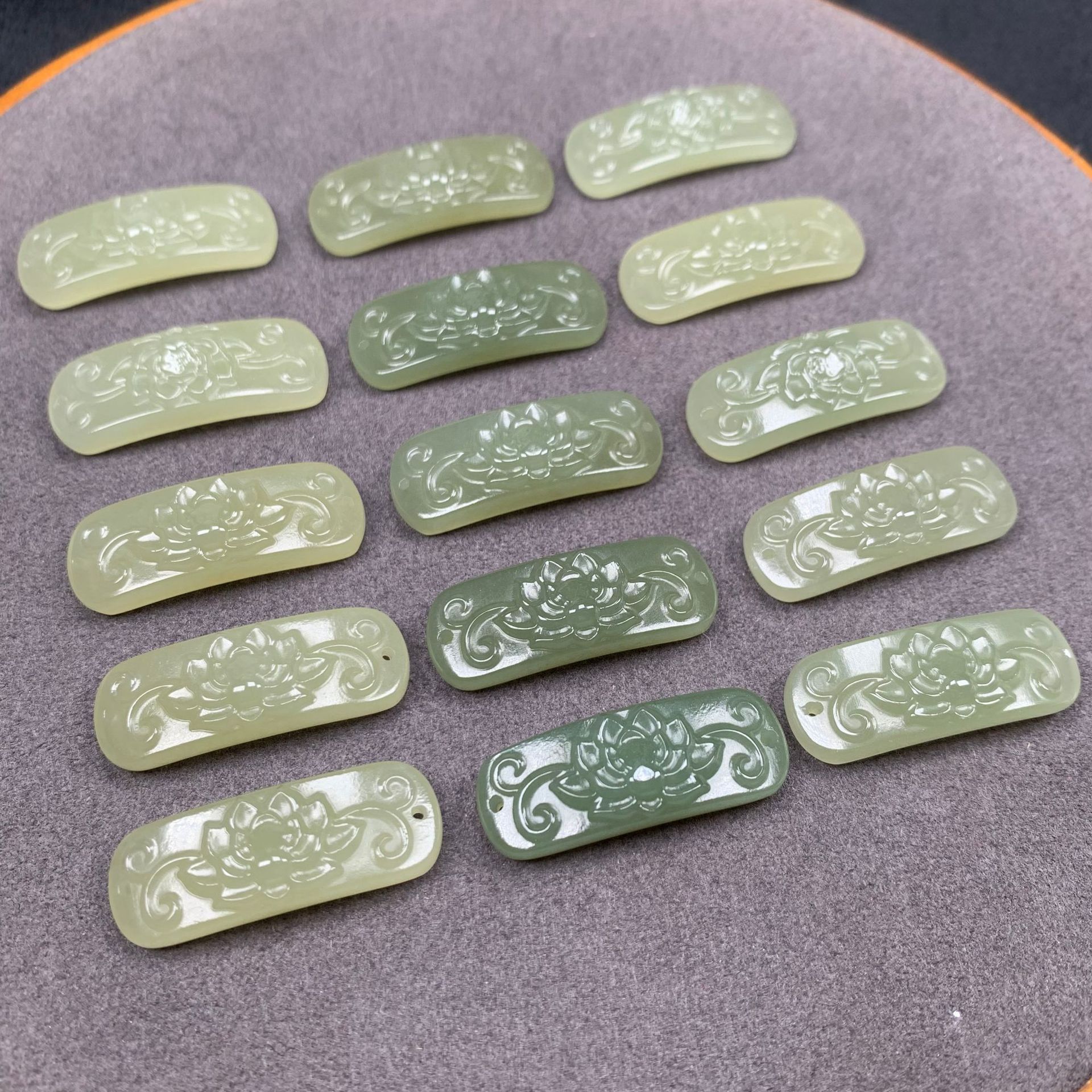 工場卸売り天然和田玉青海材料湖水緑平安ボタンペンダントアクセサリー青海材料平安ボタン