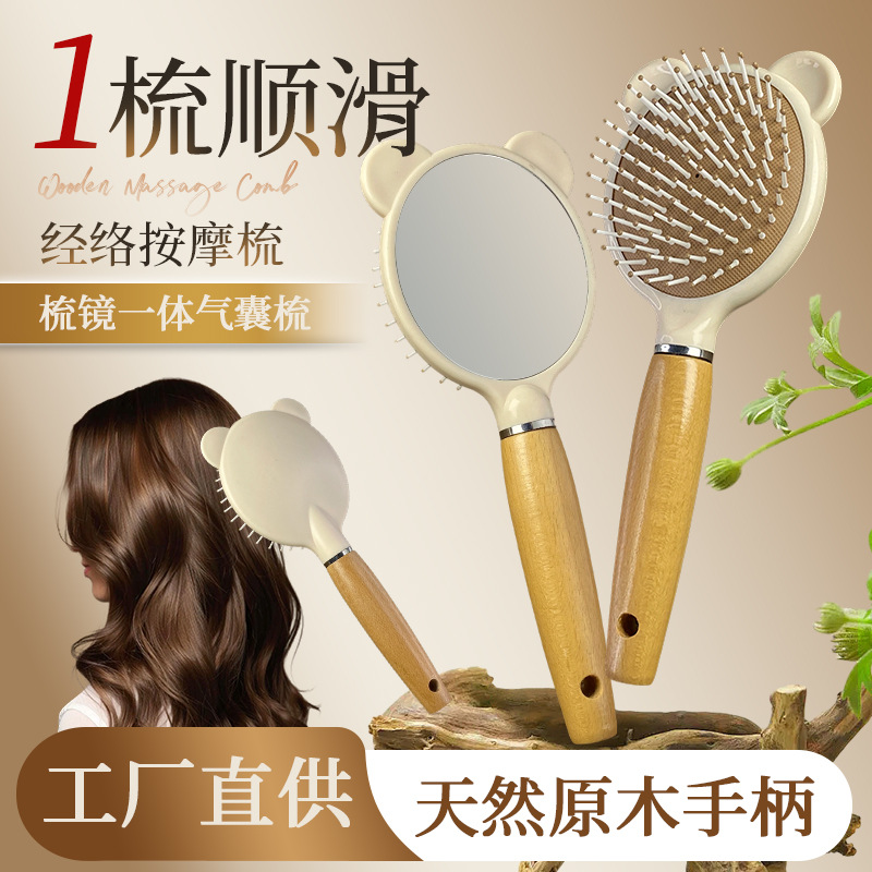 简约榉木柄气垫按摩梳子女生专用大板卷发可爱气囊梳跨境厂家直供