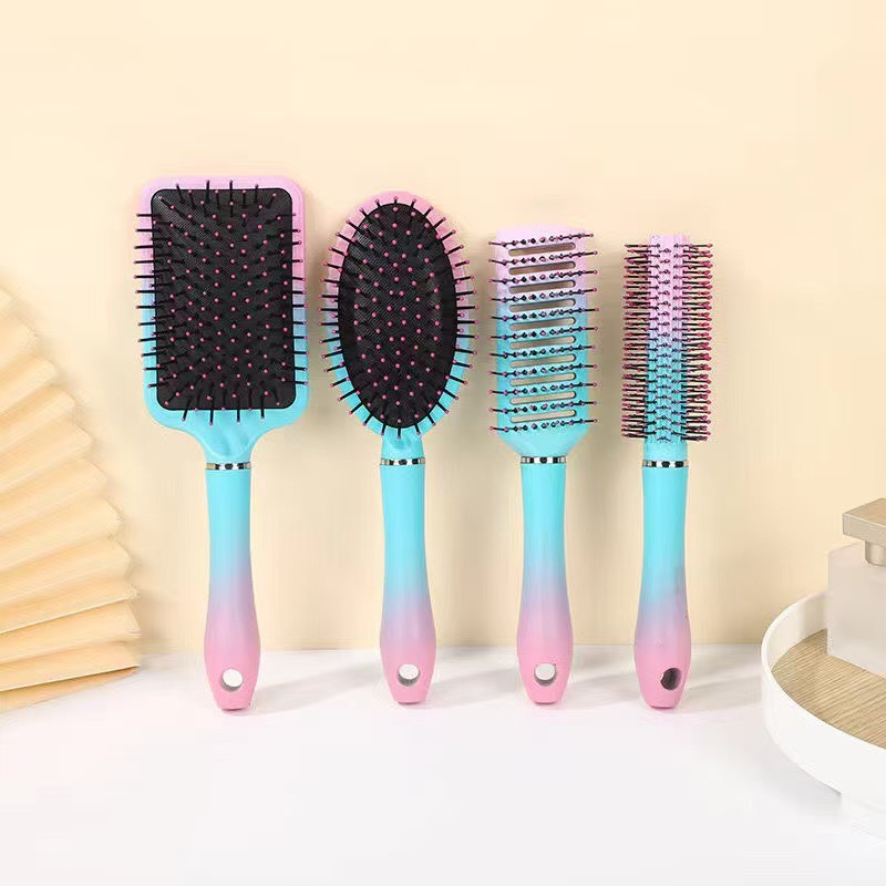女性の長い髪用のエアクッションコーム、滑らかなヘアコーム、グラデーションカラー、帯電防止、ふわふわ巻き毛コーム、マッサージコーム