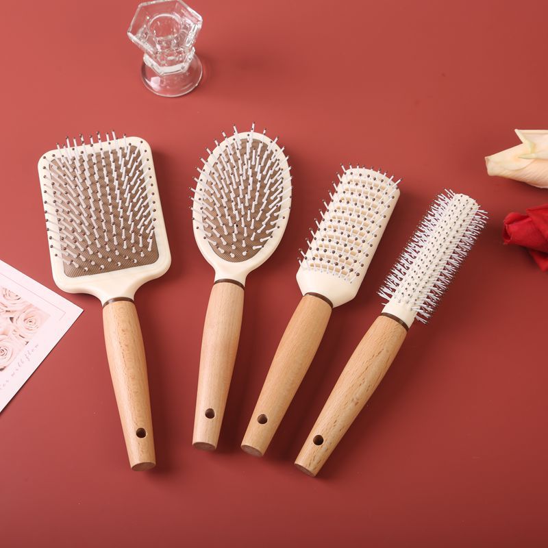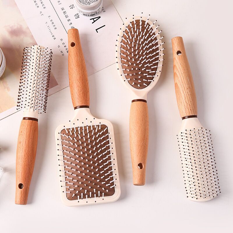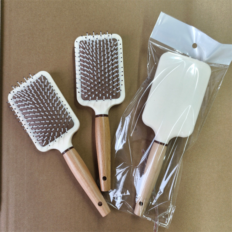 在庫あり、エレガントでシンプルなエアクッションコーム、家庭用マッサージコーム、ブナ材ハンドル、帯電防止エアバッグコーム、ヘアコーム