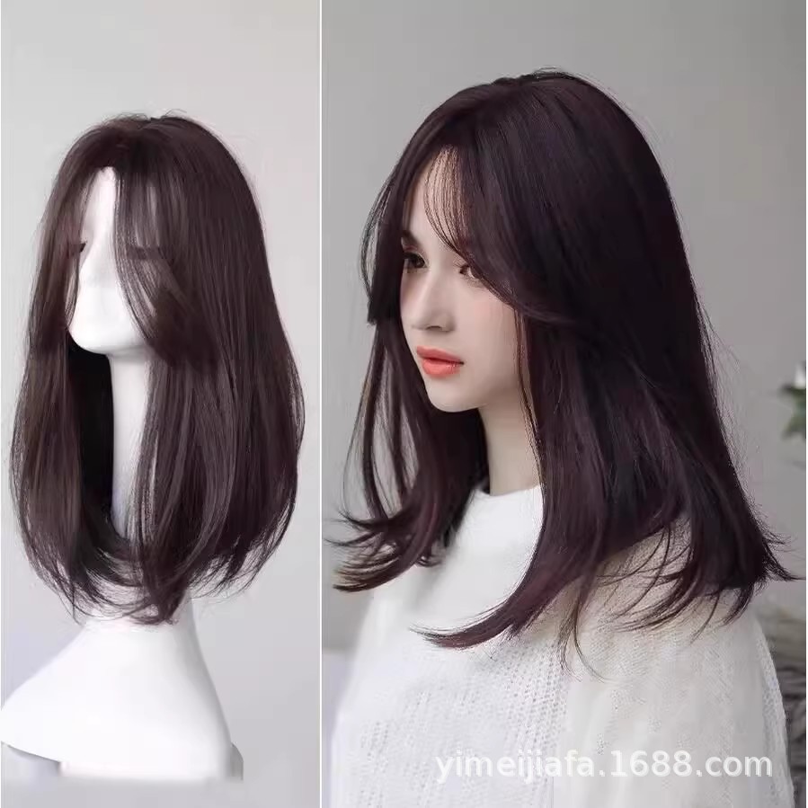 ネットの赤いかつらの女性の中で分内は八の字の前髪を掛けて丸い顔の気質のファッションの中で長い直髪の鎖骨の髪のカバーを修理します。