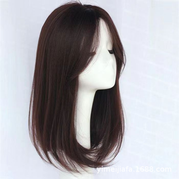 全頭カバーのかつらの女性の短いストレートのシミュレーションの髪の波の頭は顔を修理して自然に若い中高年のお母さんの丸い顔を現します。