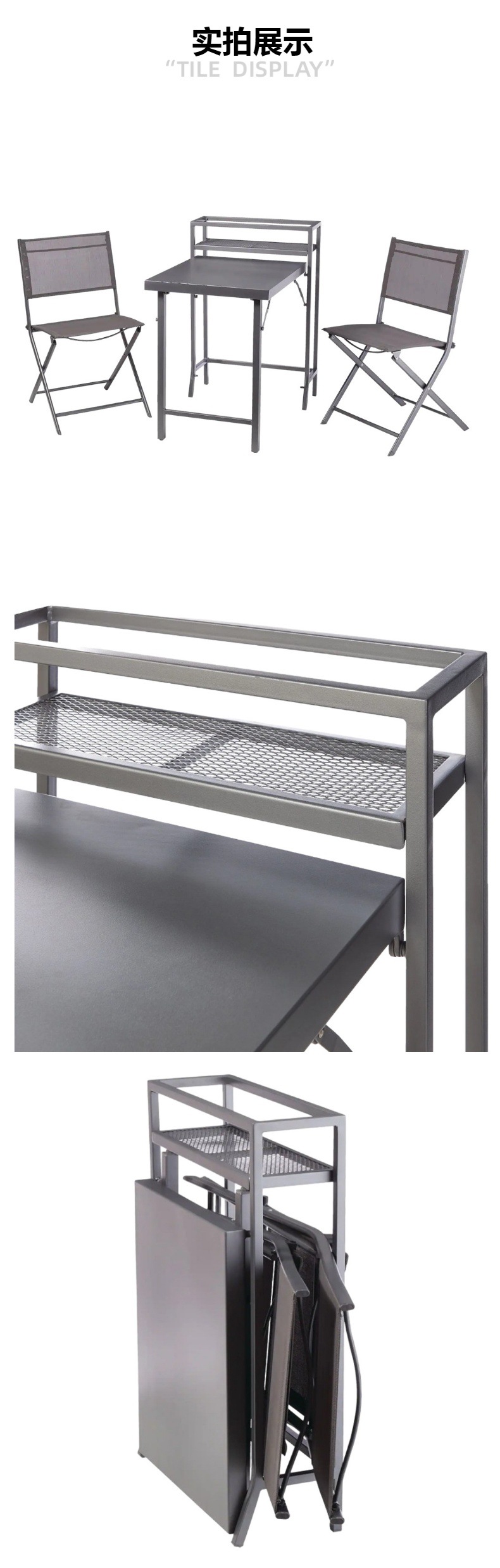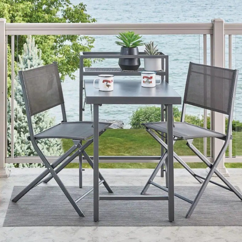 新しいバルコニーの3つのセット屋外ガーデンのテーブルと椅子のセットテーブル付き金属折り畳み可能なテーブルと椅子の3つのセット