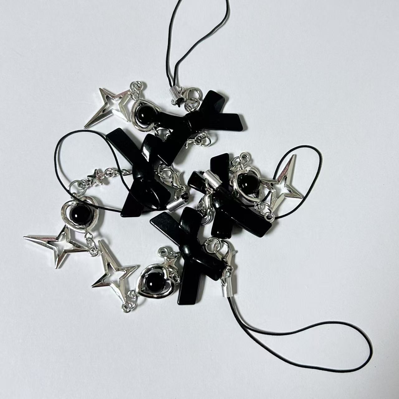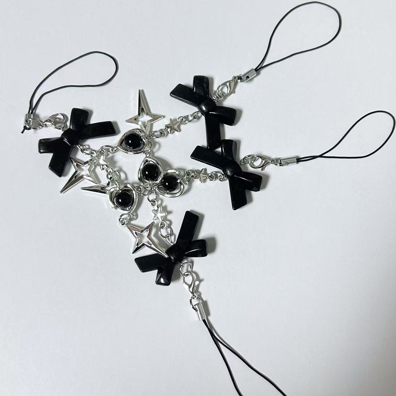 日韓系ins風甘い少女心銀色の星の蝶結びの携帯チェーンは簡単です。
