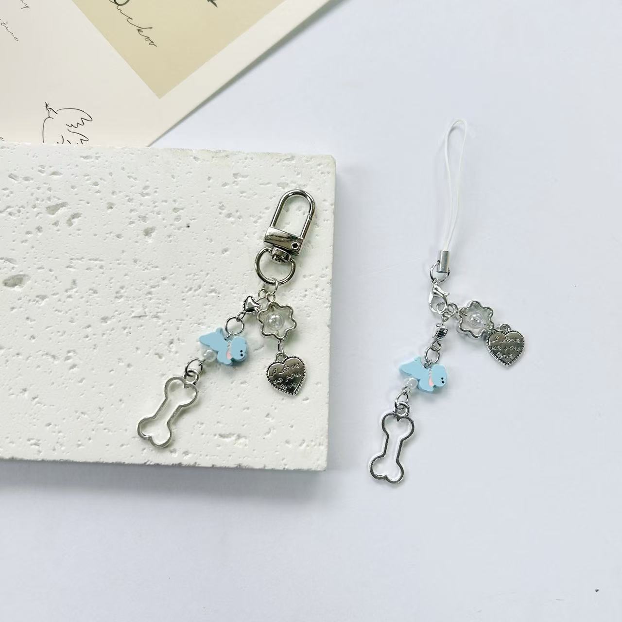 走る子犬ins小清ビーズストラップ少女心鎖キーホルダーストラップ