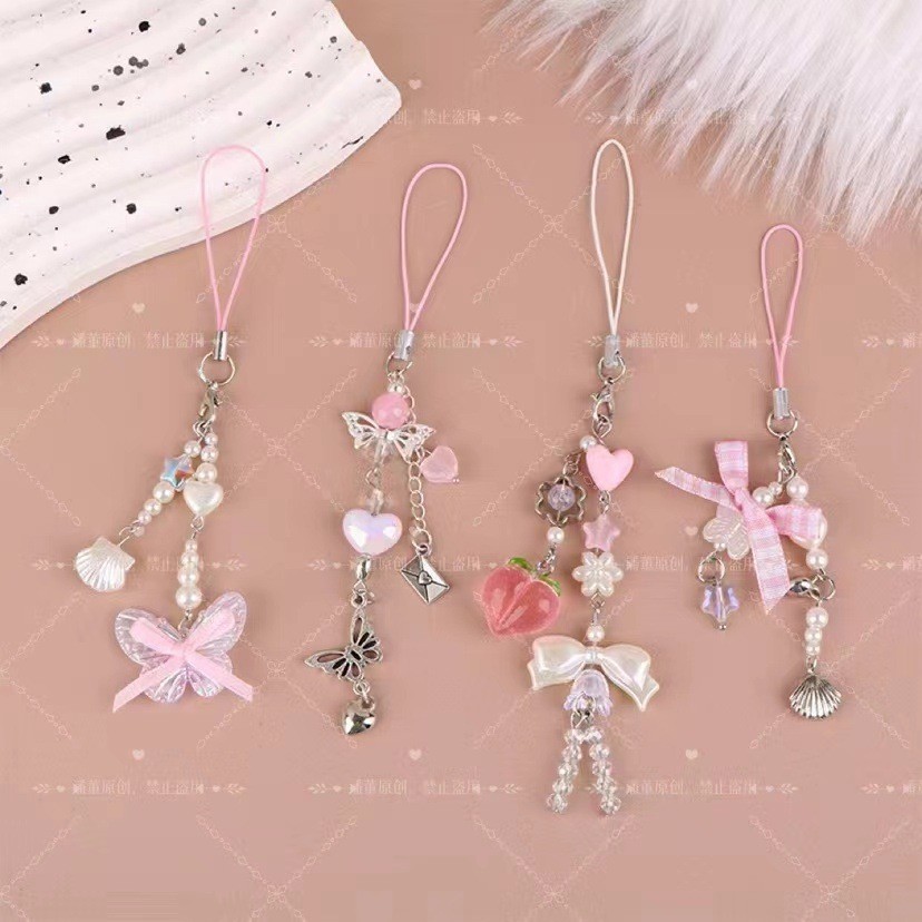 漫画風KTガールハートビーズ携帯ストラップバッグ飾りCCDペンダント星蝶結び親友ギフトins風