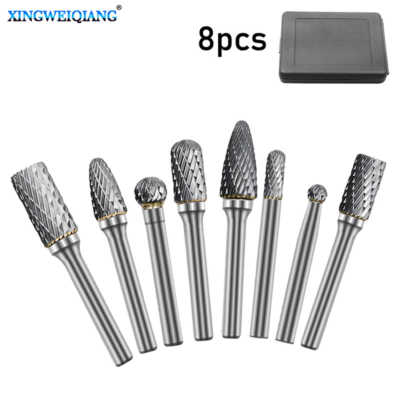 8件套硬质合金旋转锉打磨头 双槽旋转锉刀钨钢磨头 钨钢铣刀套装