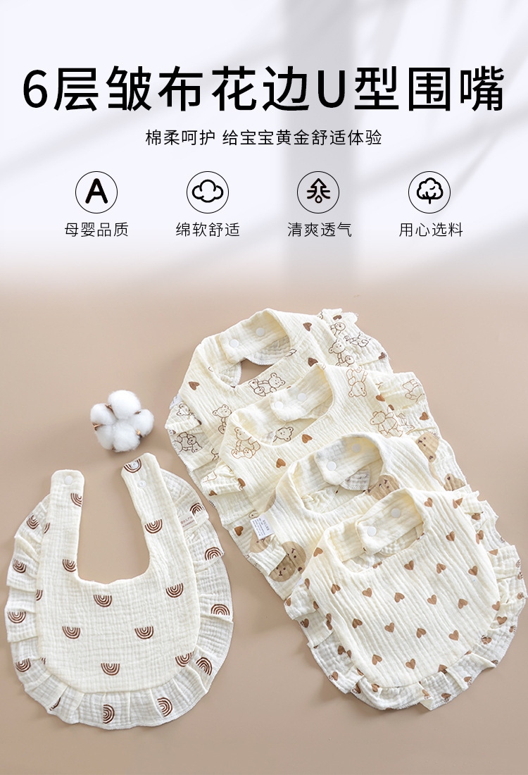 インススタイルベビーよだれタオル純綿タイプA6層ガーゼU字型よだれかけフリルベビー嘔吐防止ミルクタオル