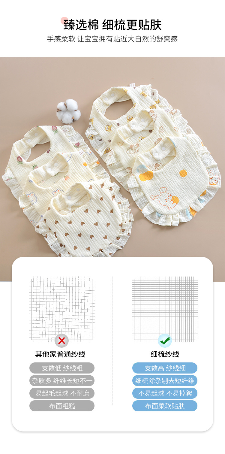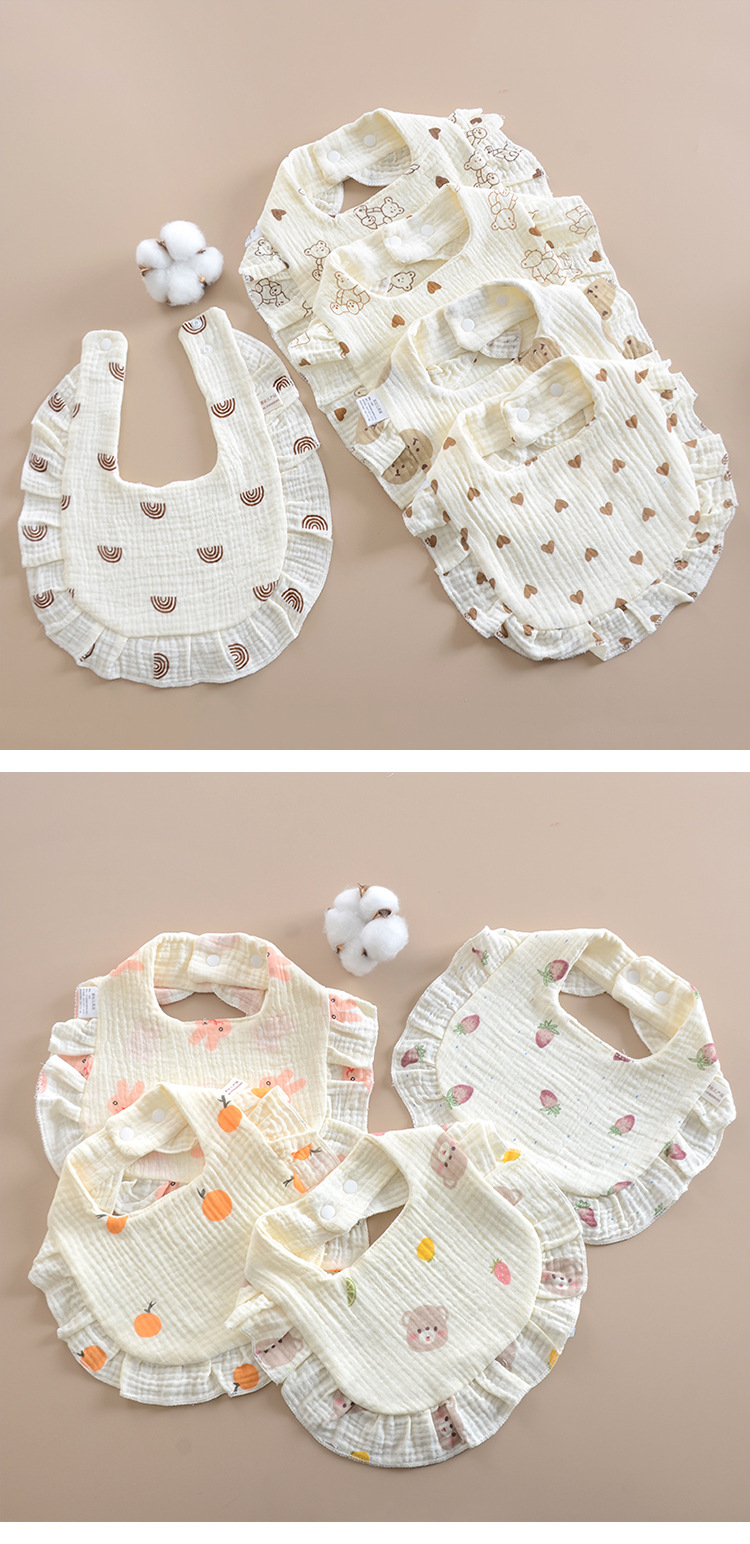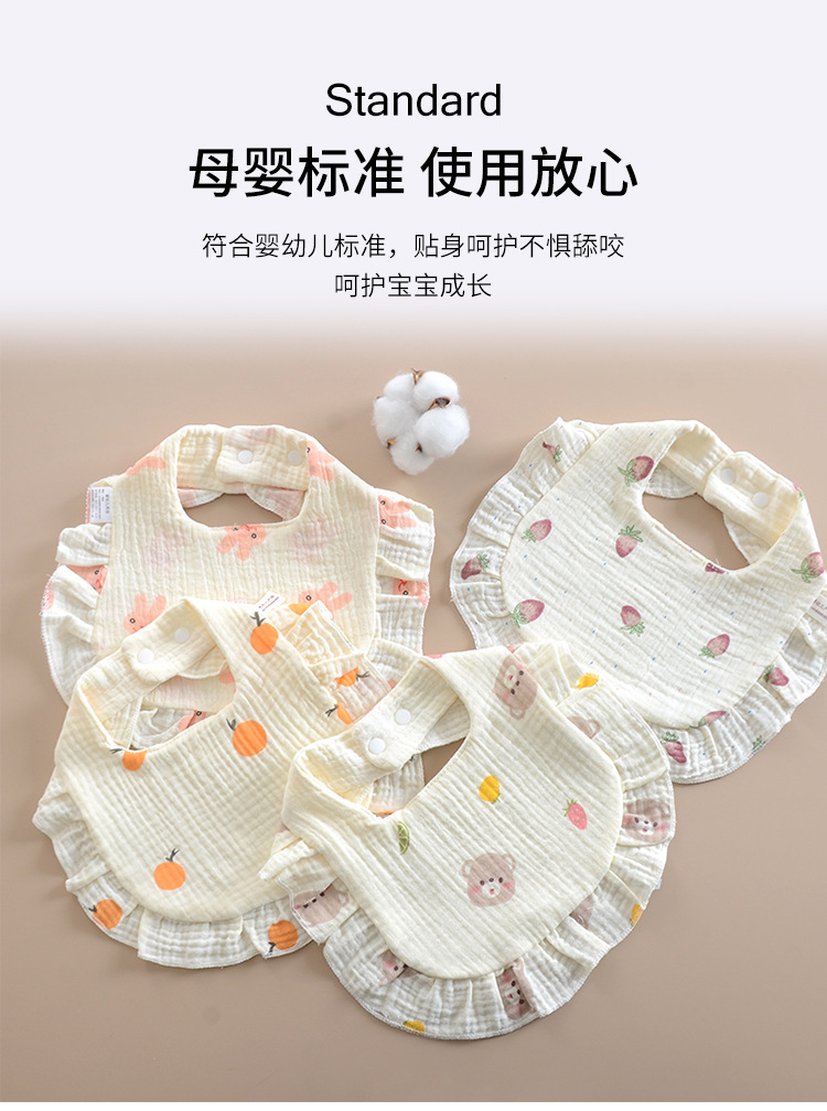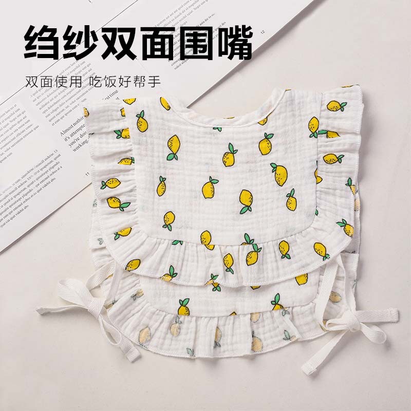 ins婴儿口水巾荷叶边宝宝纯棉印花纱布花边围嘴围兜口水兜全棉A类