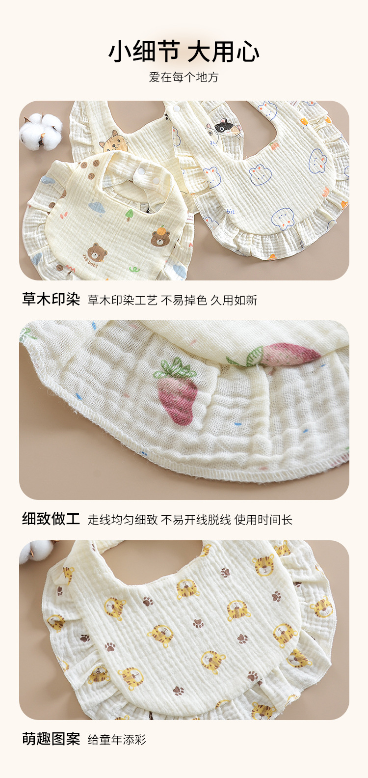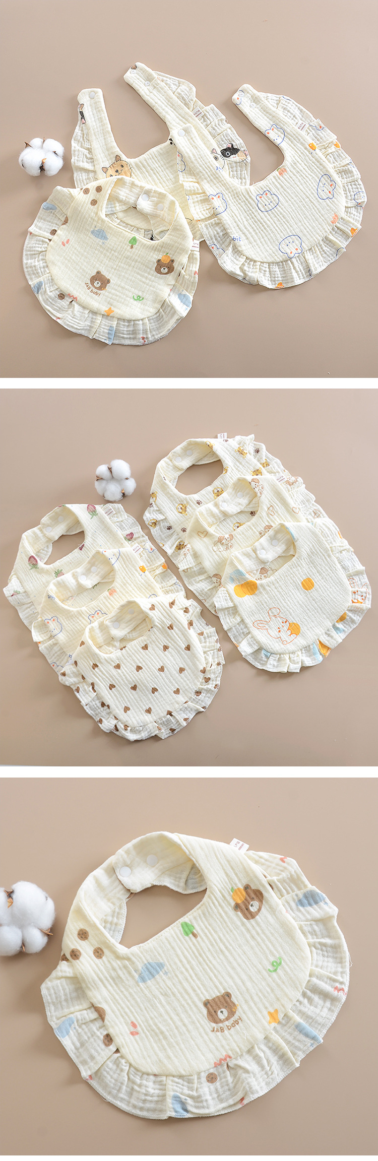 ベビーよだれかけ クラスA 8層ガーゼ 花びら型よだれかけ 漫画プリント 子供用よだれかけ 回転式サイドオープンよだれかけ