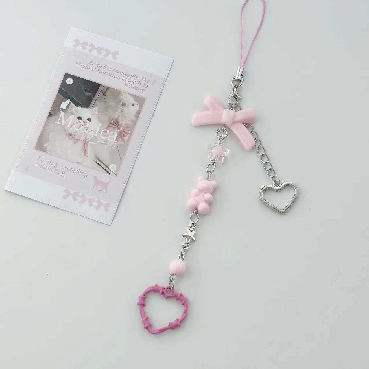 オリジナルかわいいピンクのグミベアリボンラブ携帯電話チェーン日本 y2k ガールハートペンダント