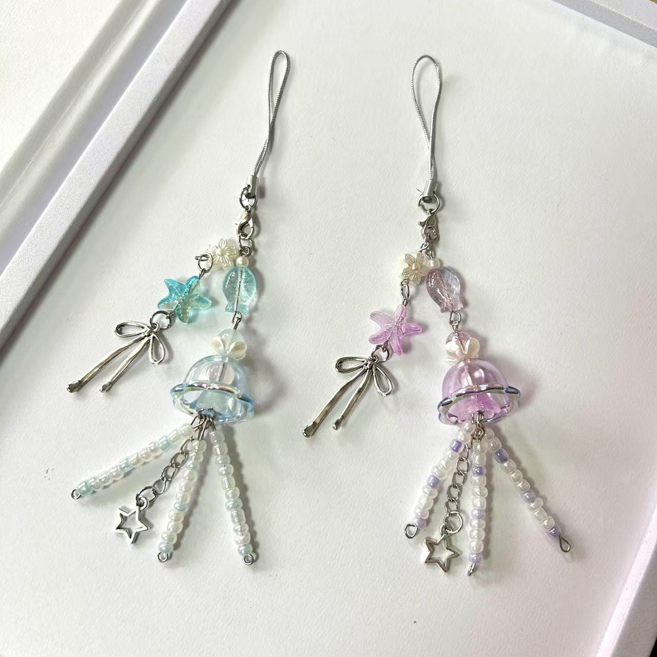 オリジナルクラゲスターリボンペンダントビーズ携帯電話チェーンペンダント小さな新鮮なキーホルダータッセル