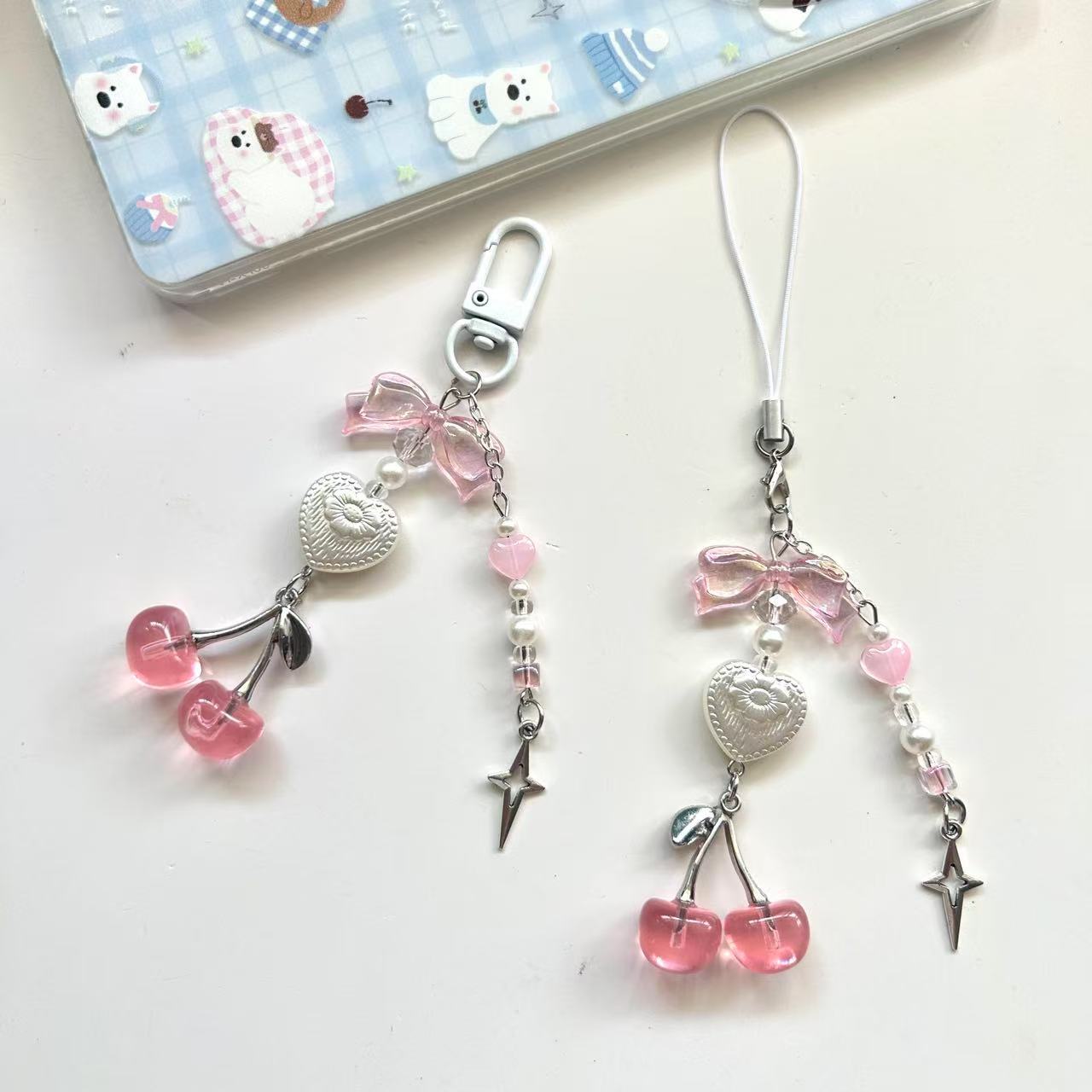 清晰甜美樱桃手作串珠少女心手机链咕本卡册挂件包包ccd挂件ins