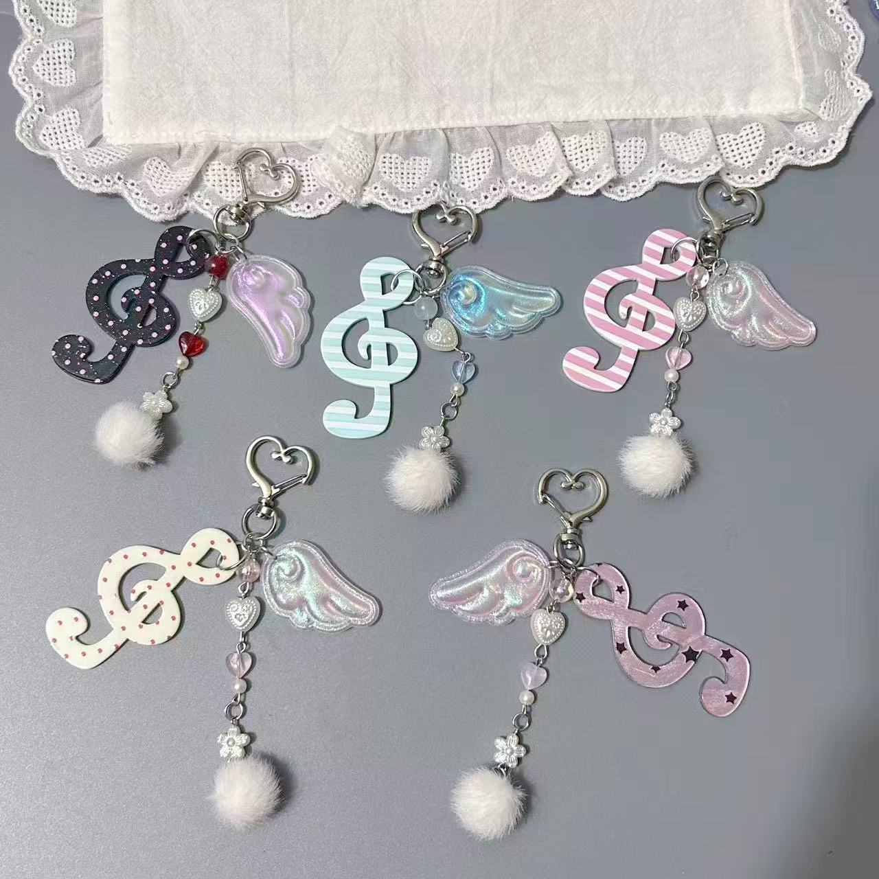 创意日韩ins古早波点条纹音符星星钥匙扣包挂件配饰创意可爱趣味