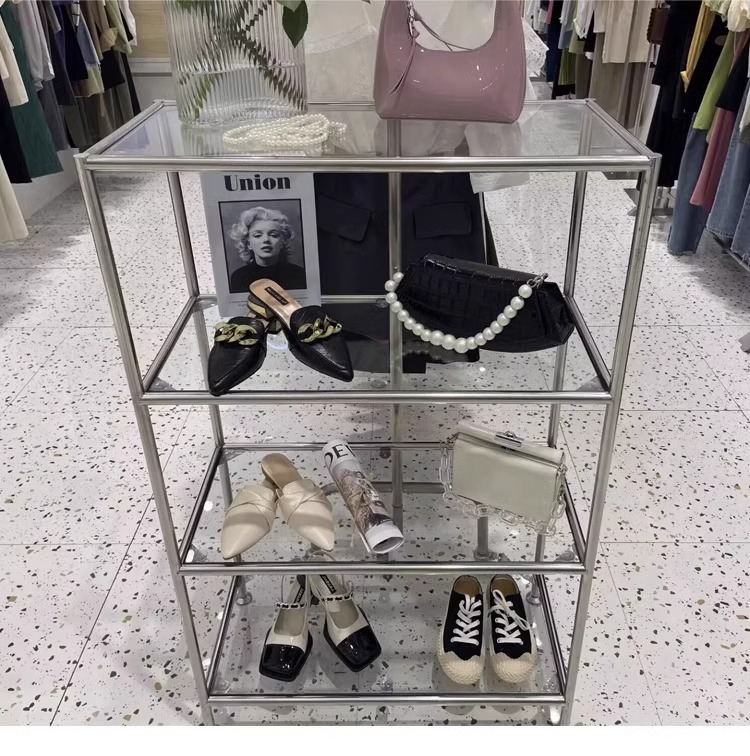 ステンレス衣料品店靴棚バッグ靴展示棚アクセサリー置物ガラスショーケース製品ショーケース
