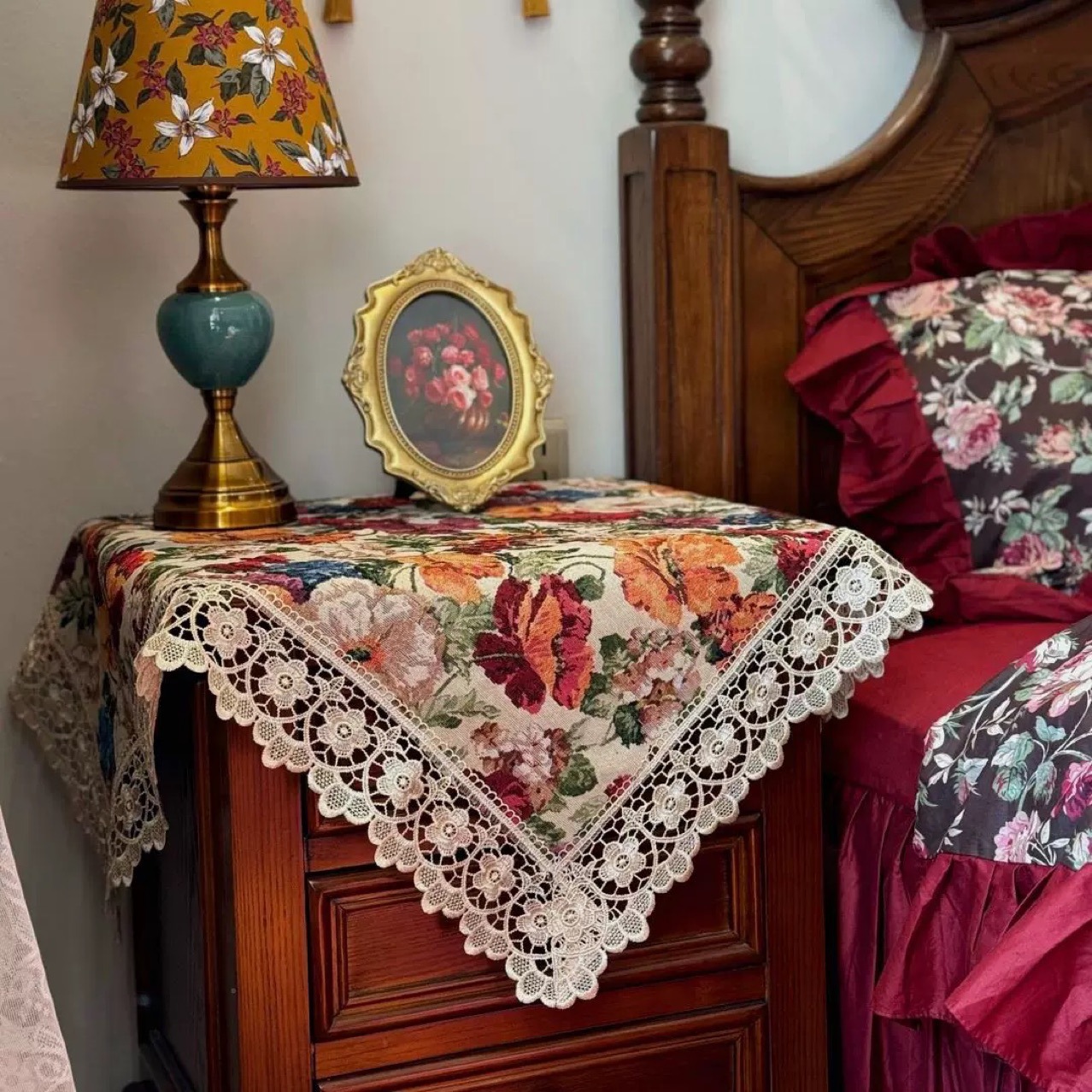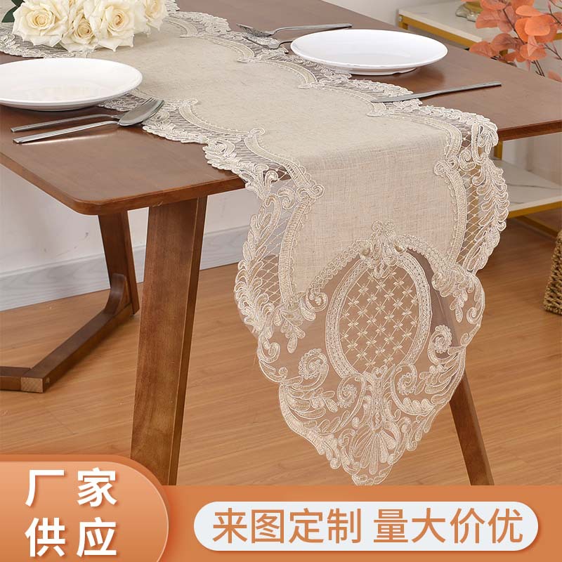 蕾丝高级感桌旗家用家居绒布蕾丝茶几桌餐桌长条盖布桌旗批发