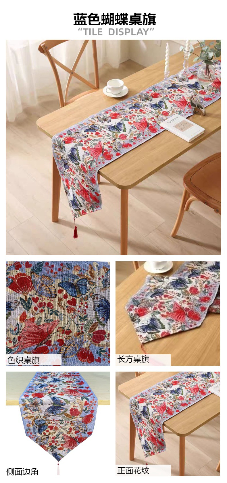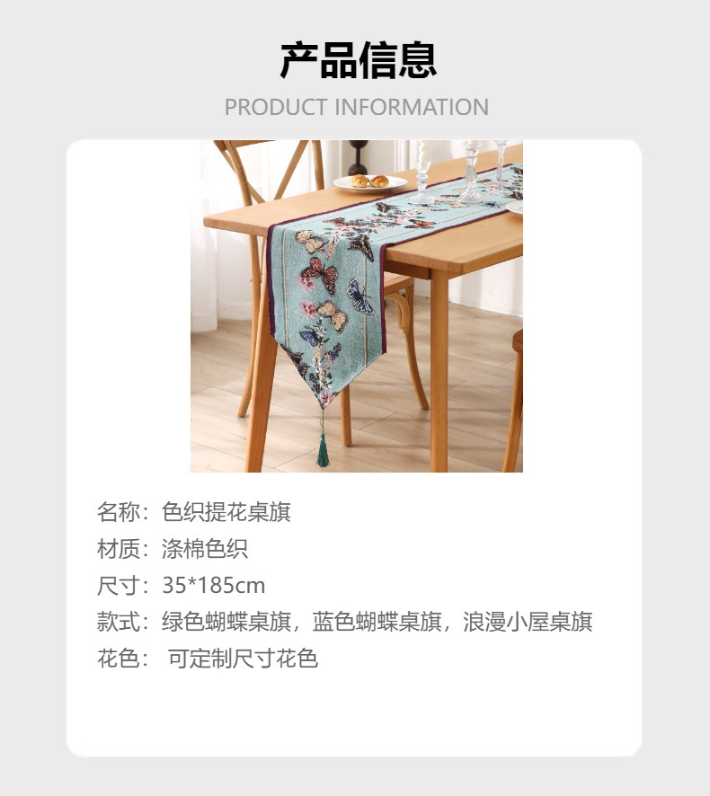 【ジャカード色のテーブル旗】新作春のテーブル旗蝶花柄の豪華なテーブルクロス小清新スタイル綿麻
