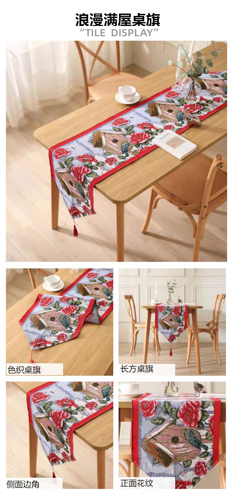 桌旗美式复古餐桌茶几电视柜桌布餐边柜长条装饰布高级感防滑轻奢