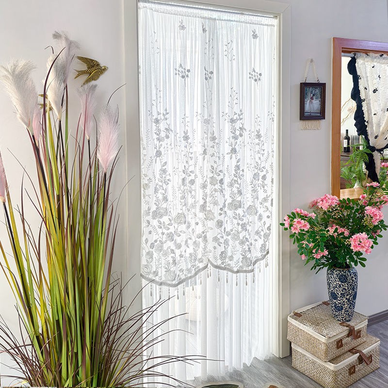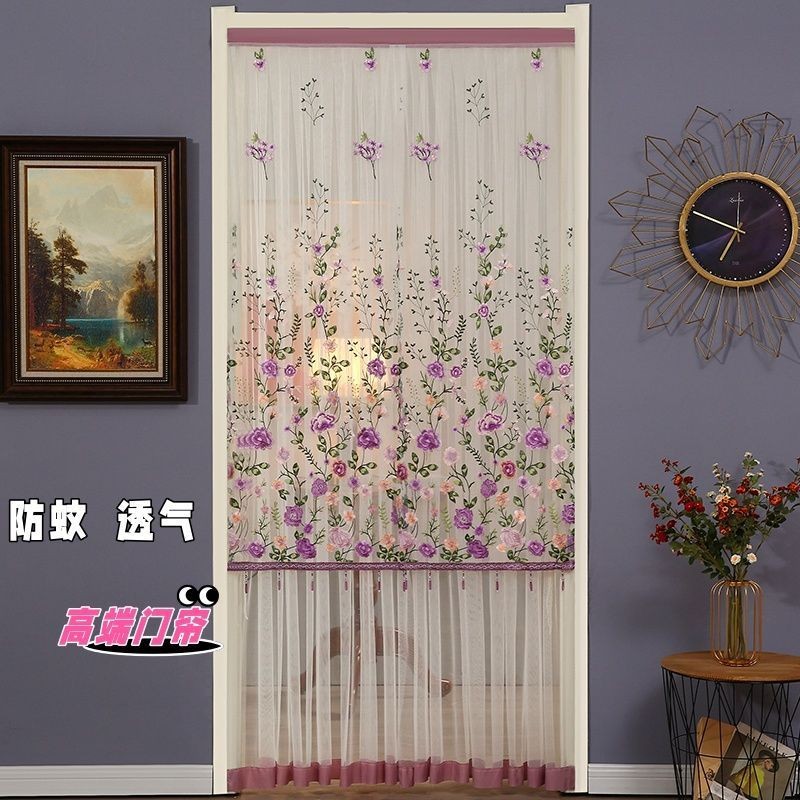 ドアカーテン花柄パーティション雰囲気ロングハイエンドパンチフリー二層刺繍レース防蚊ガーゼドアカーテン