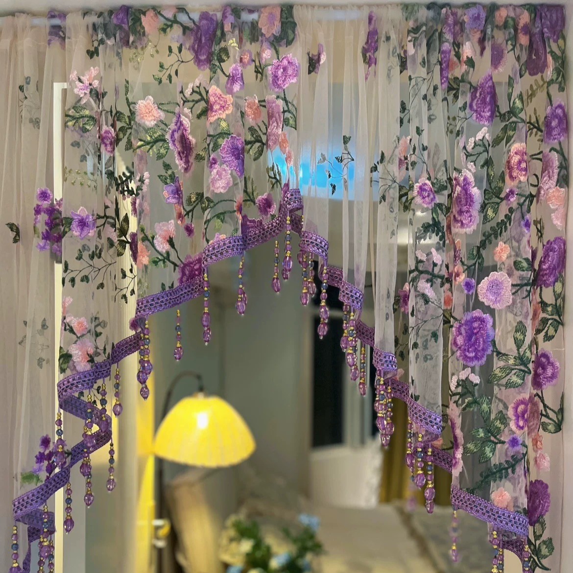 2025新型寝室レースのカーテンは穴を開けない廊下のカーテンのドアに刺繍された雰囲気感があります。