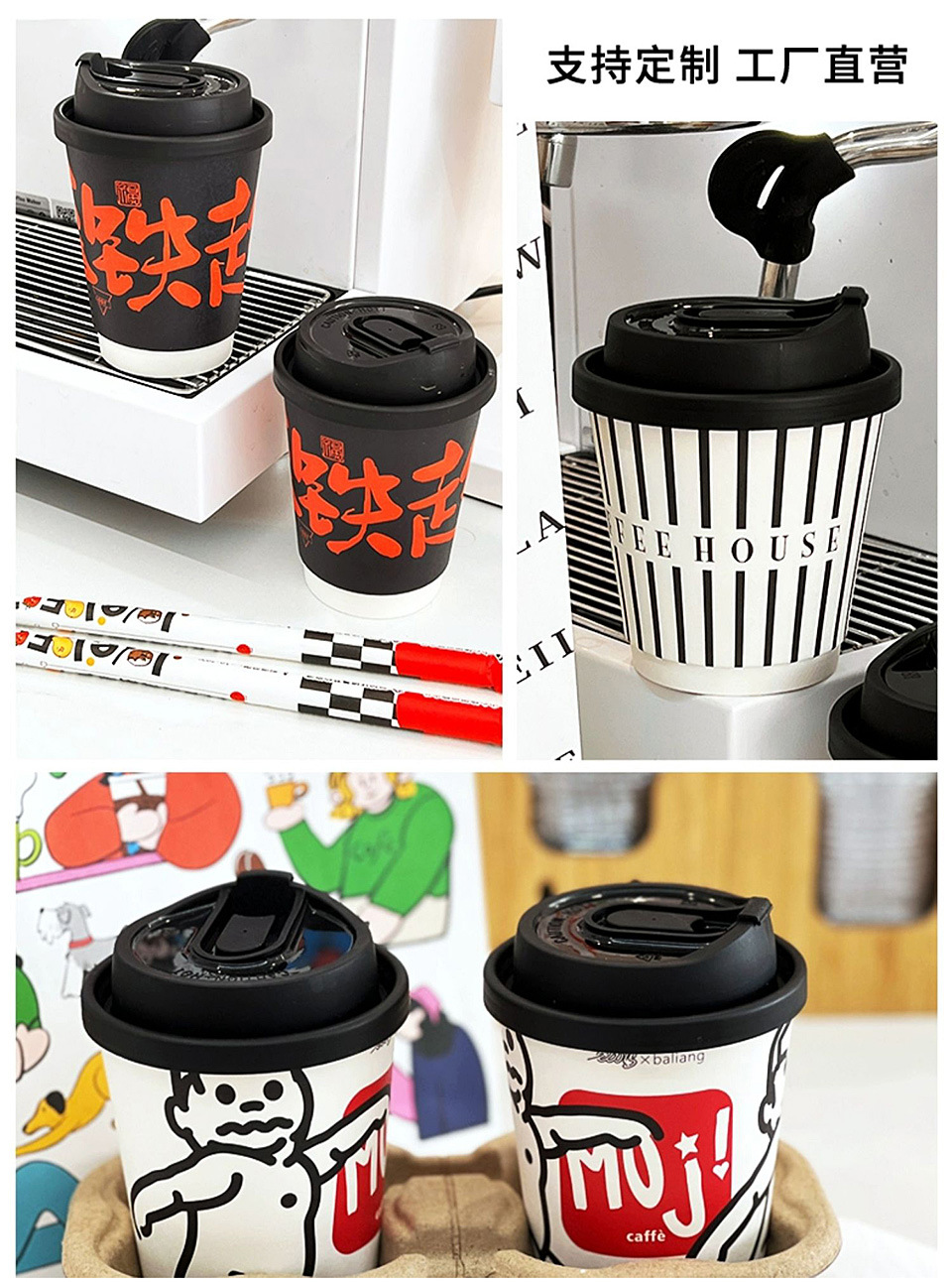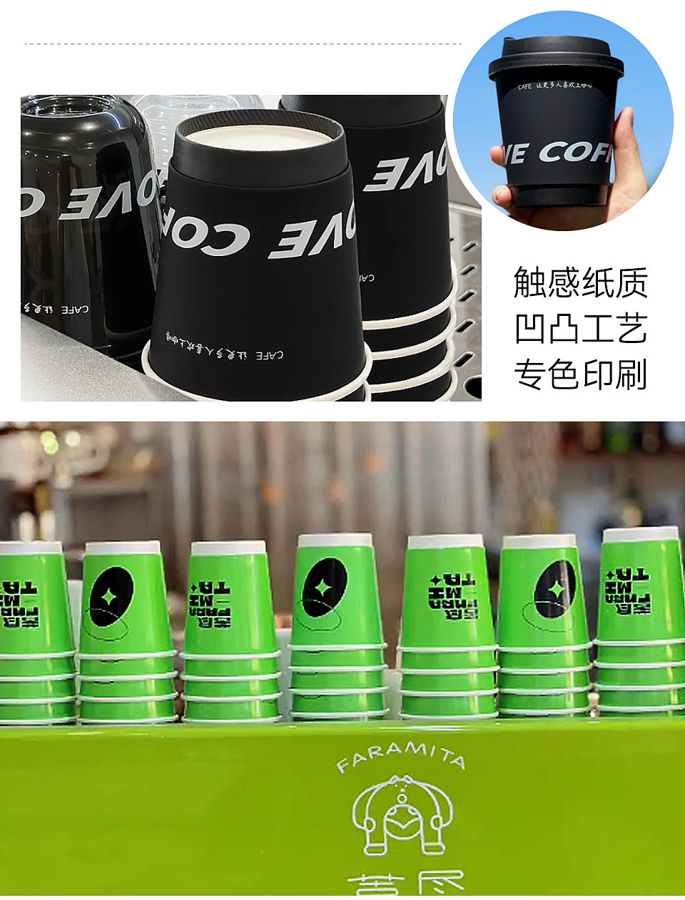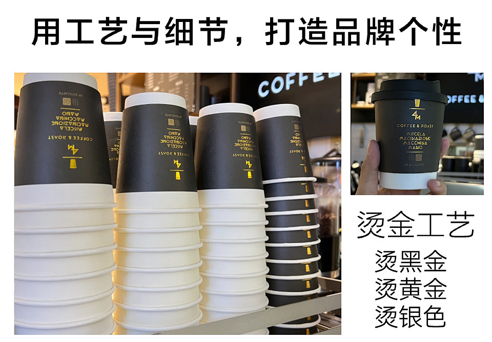 使い捨てコーヒーカップ、ミルクティー、凹凸加工紙カップ、専用テイクアウト用蓋付き業務用ホットドリンクカップ、ロゴ入り