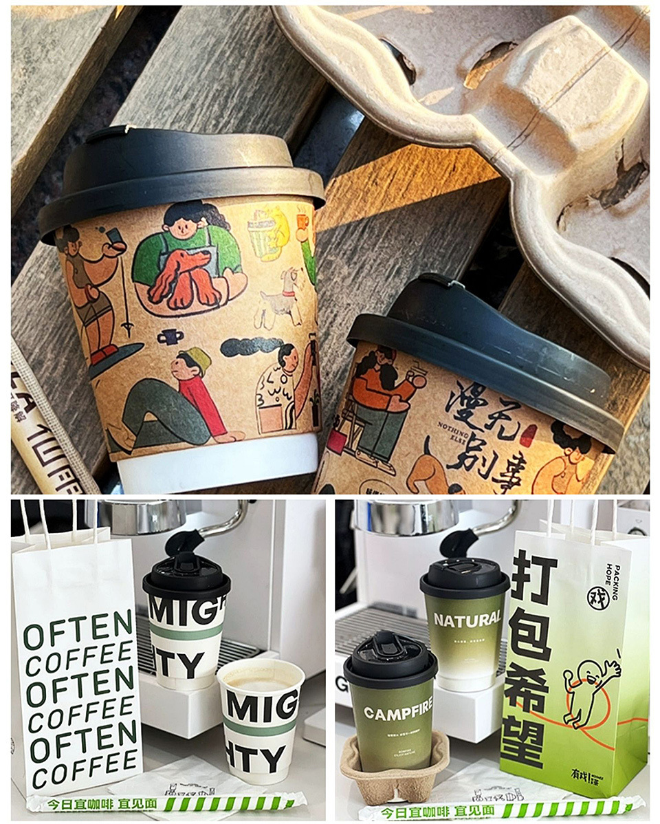 網紅潮有感使い捨てコーヒーカップ外付け梱包コップ紙蓋ホットカップカフェ専用紙コップ