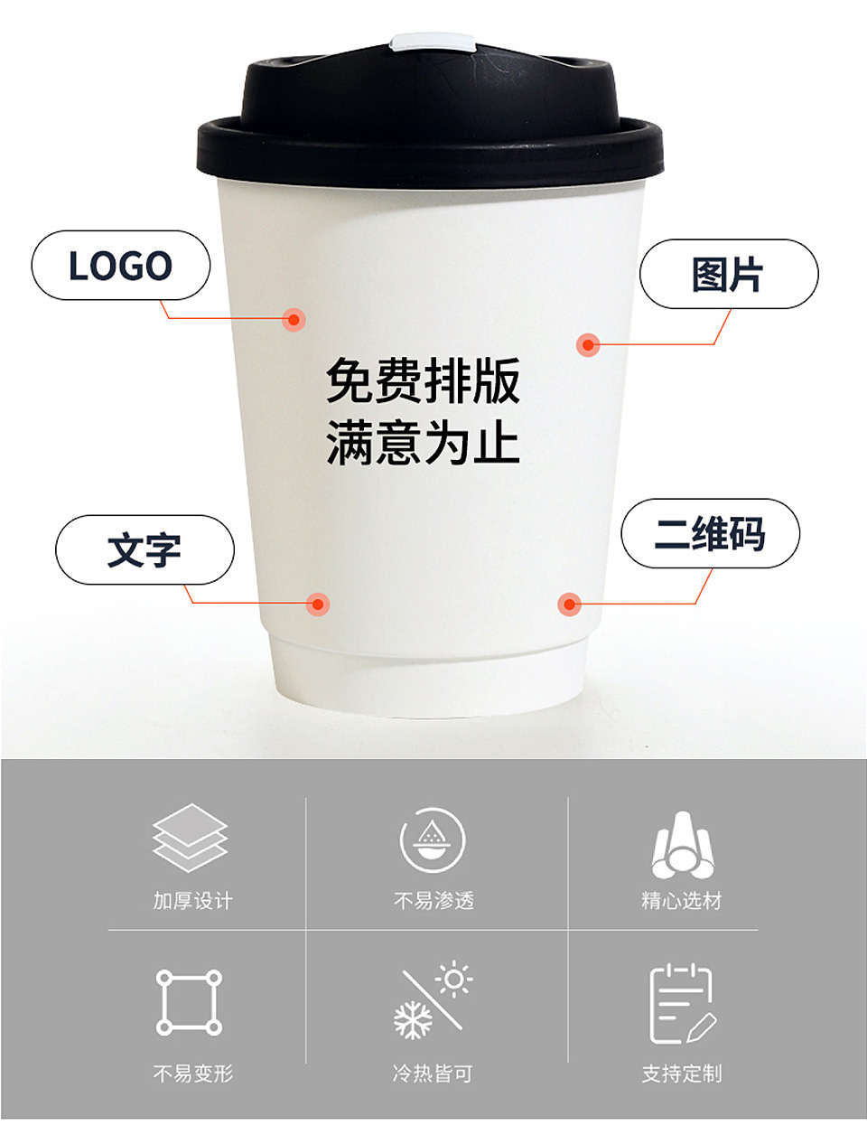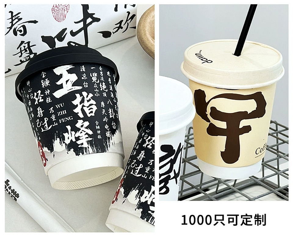 使い捨てコーヒーミルクティー二層中空純白テイクアウトホットドリンク包装抗火傷カバー紙コップ商業印刷ロゴ