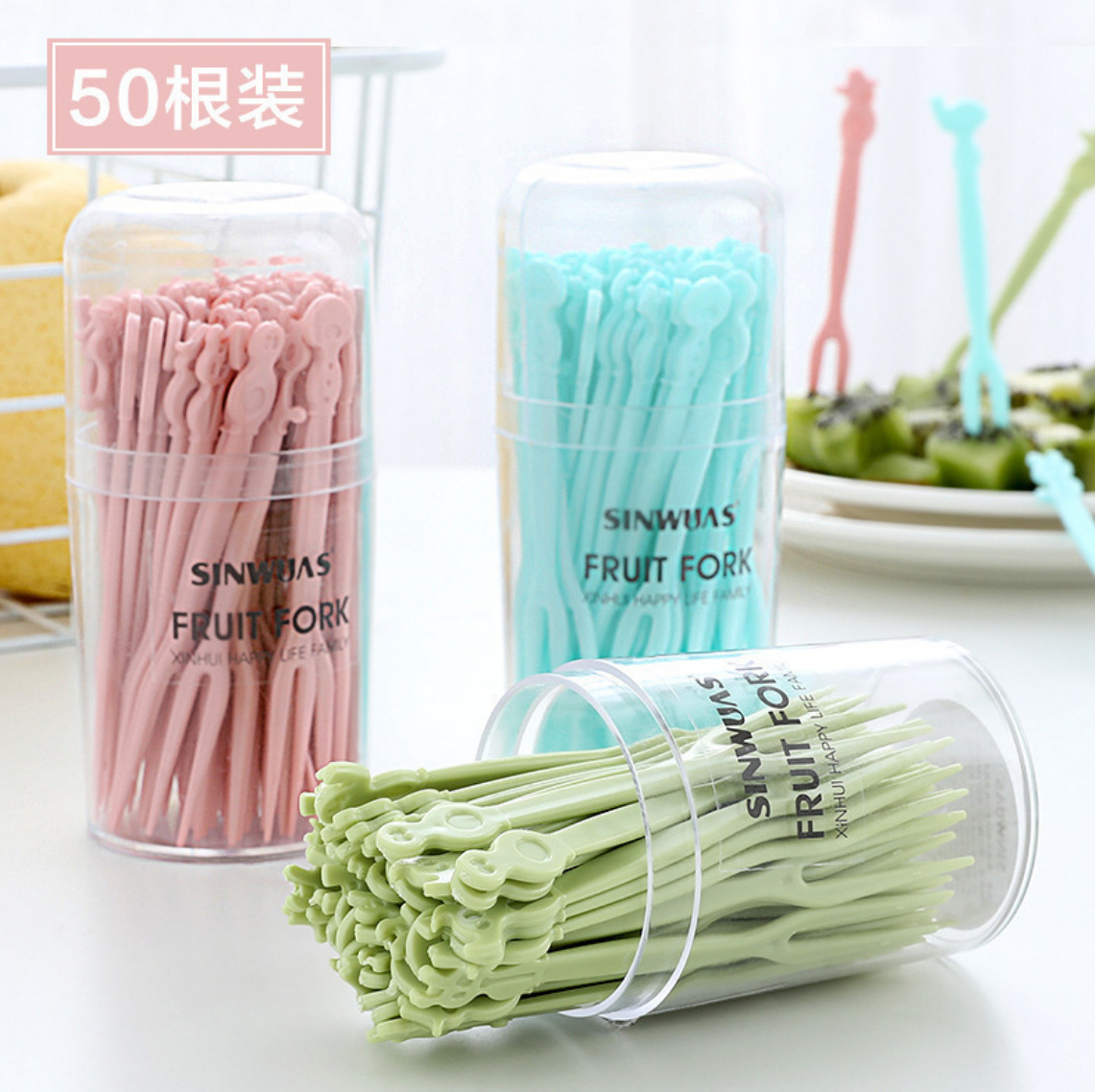 フルーツラベル使い捨てプラスチック2歯家庭用フルーツケーキ甘いフォークお菓子小さなフォークフルーツフォークセット