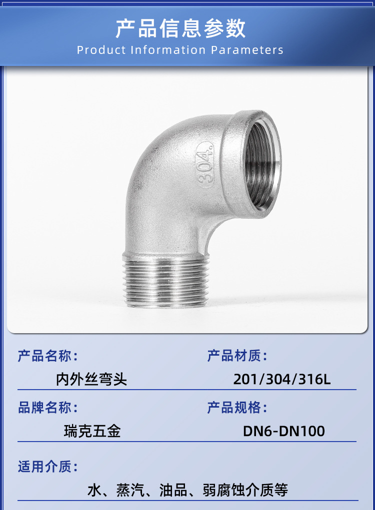 M & 304ステンレス内外糸エルボ90度直角内外歯ねじエルボ24分6分1インチ2インチアダプタ