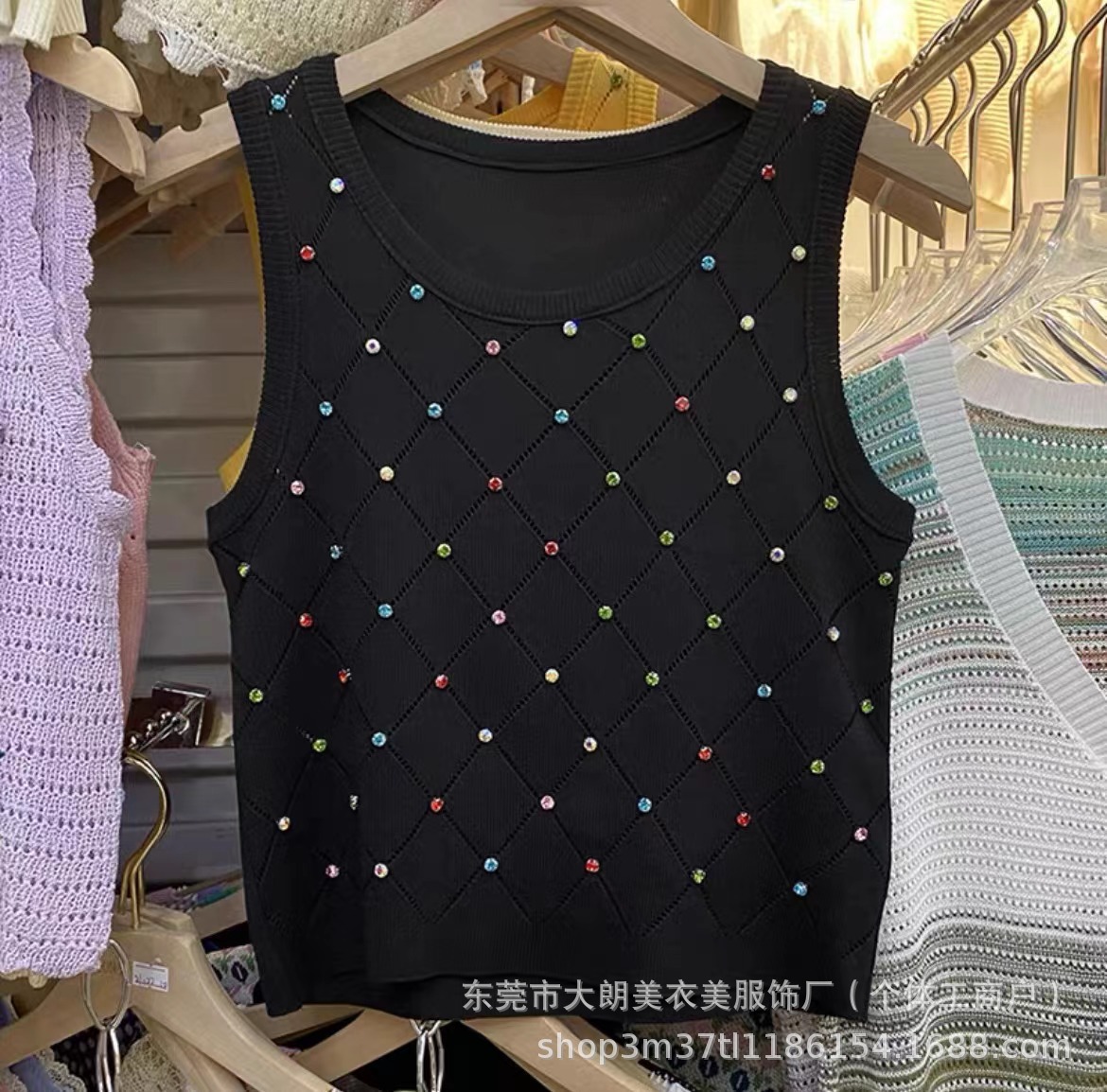 小香の気風の質感のストラップのベストの女性の上着の女性の夏の熱い販売はダイヤモンドの袖なしの丸首の修身のベストを入れます。