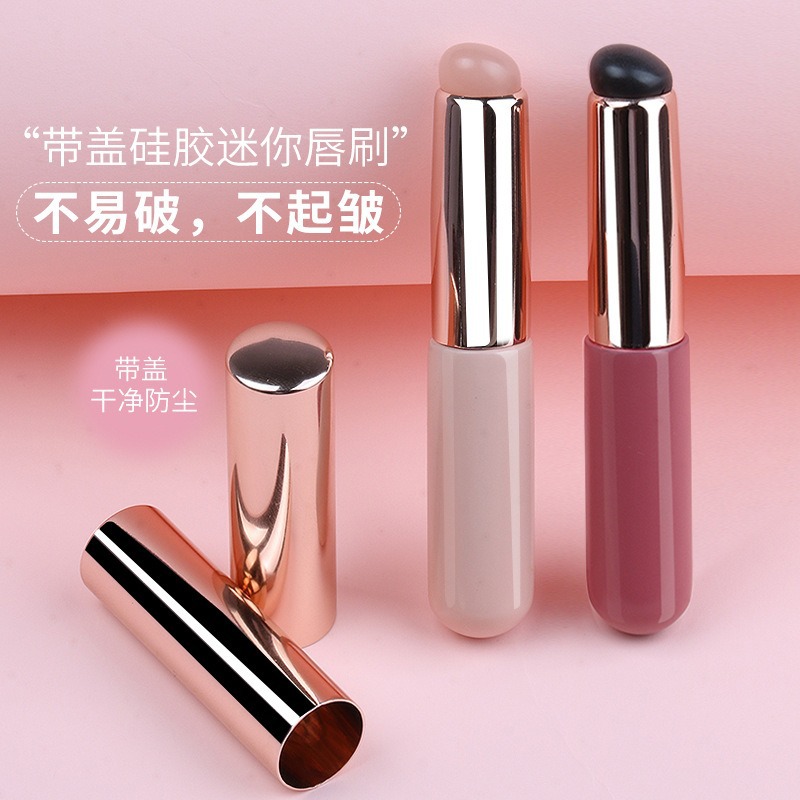 ミニシリコン唇ブラシ丸頭カバーブラシ唇部ぼかしブラシ指腹携帯カバー付き口紅ブラシ化粧ブラシ