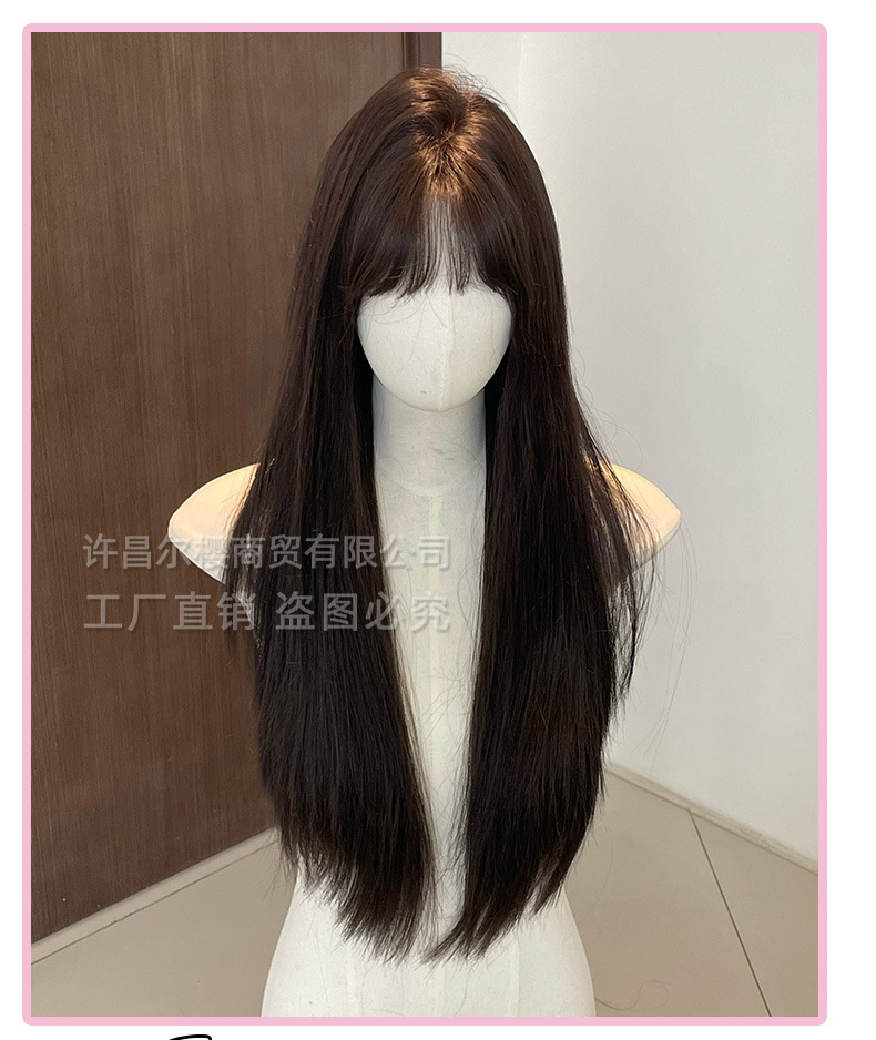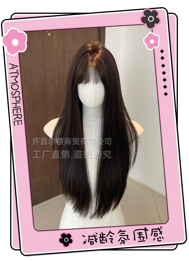 尔樱假发夏季新款女自然逼真刘海黑长直发圆脸自然全头套