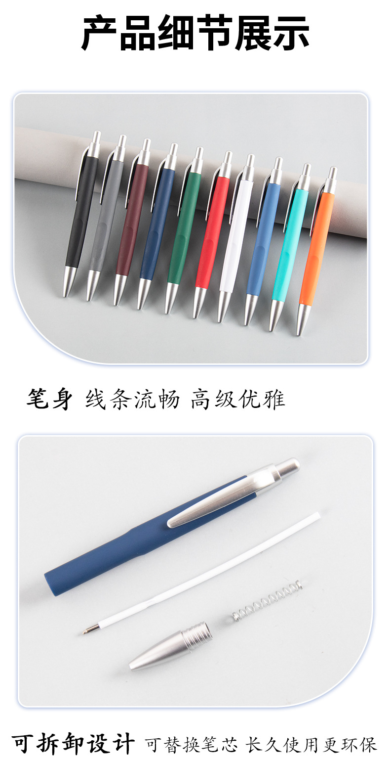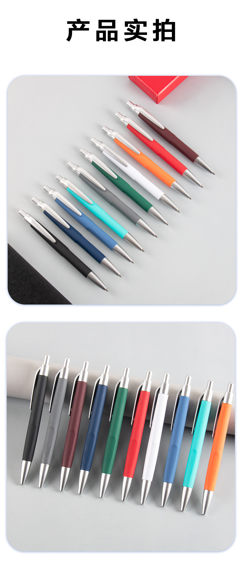 跨境外贸彩色喷胶圆珠笔商务礼品按动中性笔可印刷Logo广告笔批发