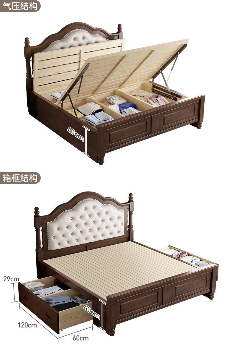 アメリカの田舎の全実木ベッド1.8mツインベッド中古風主臥結婚ベッド小戸型家庭用寝室ソフトベッド