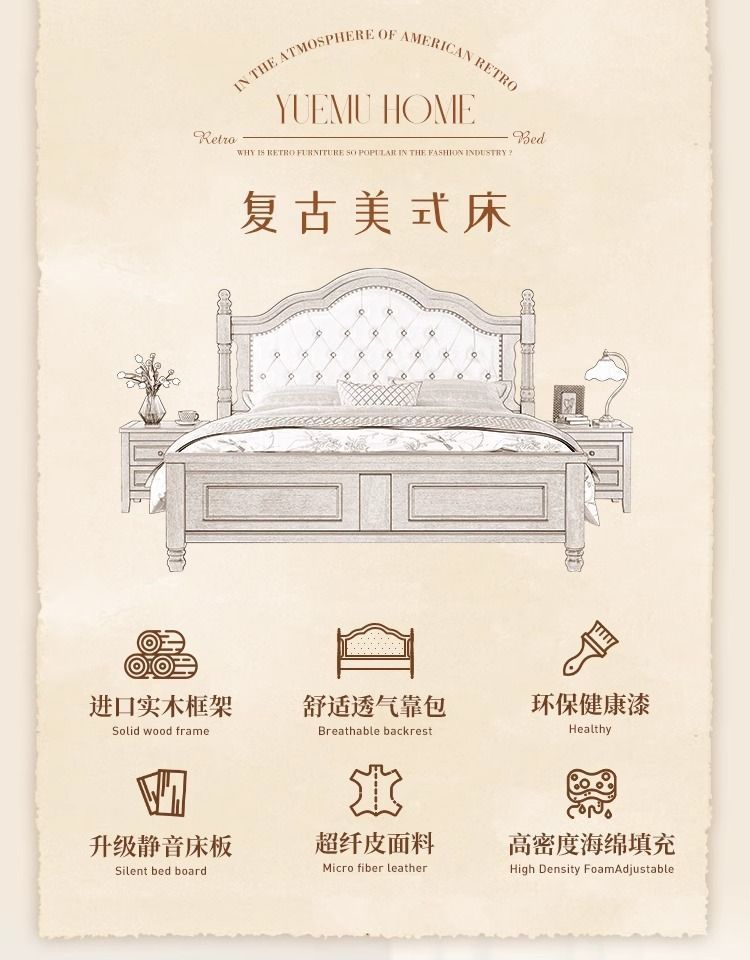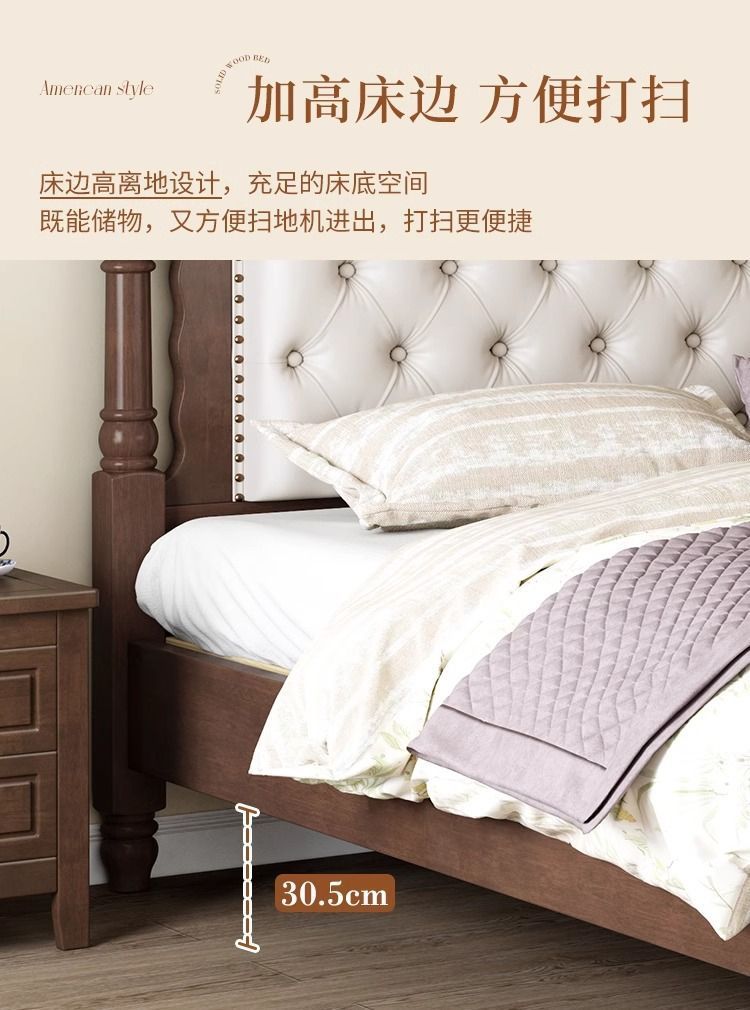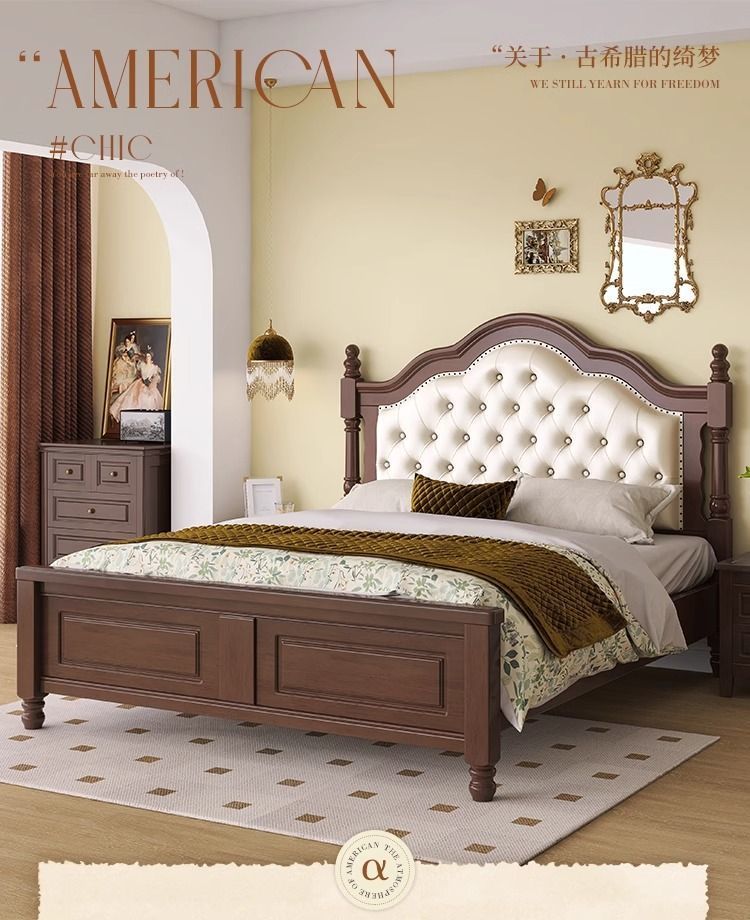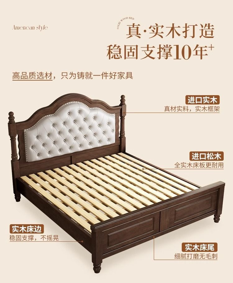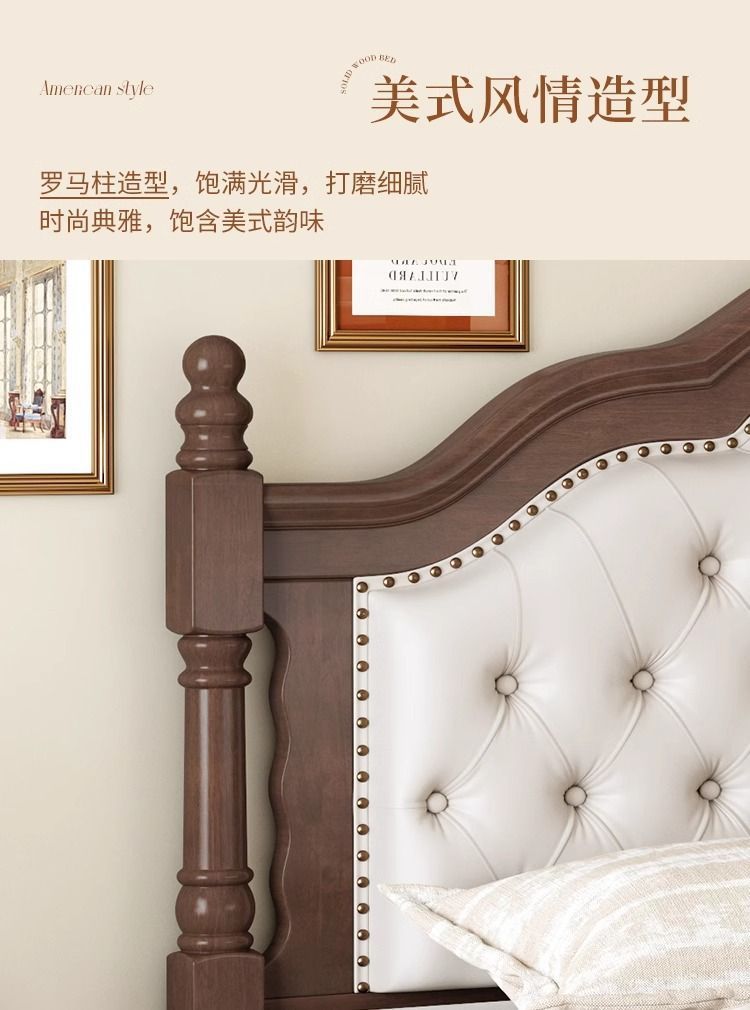 复古美式现代木床1.8双人床1.5简约古风法式安娜大气轻奢婚床卧室