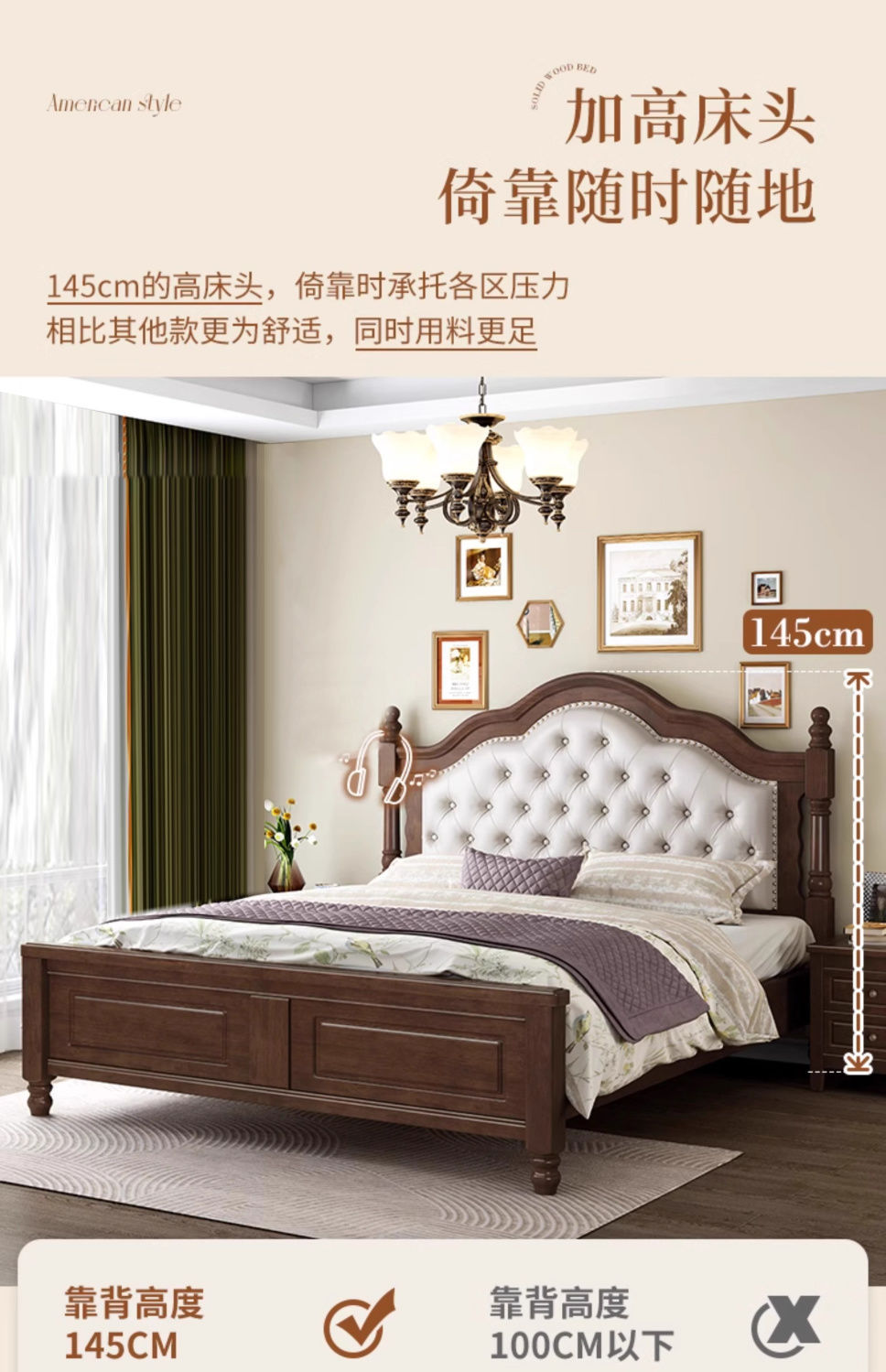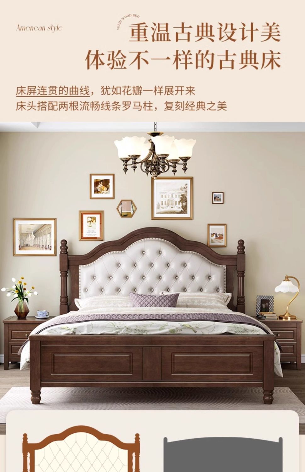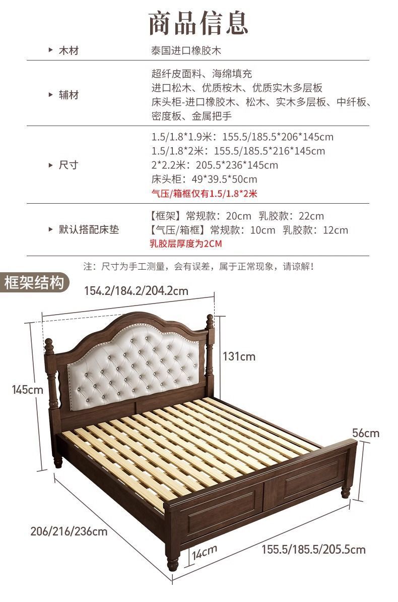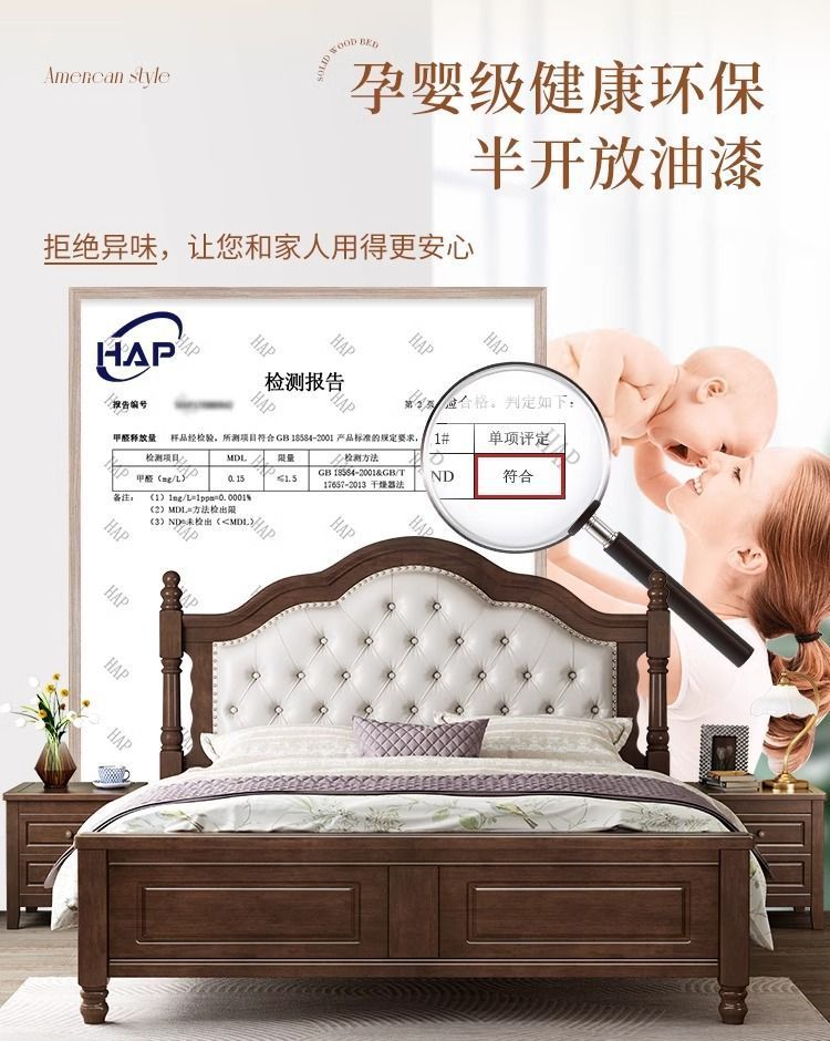 复古美式现代木床1.8双人床1.5简约古风法式安娜大气轻奢婚床卧室