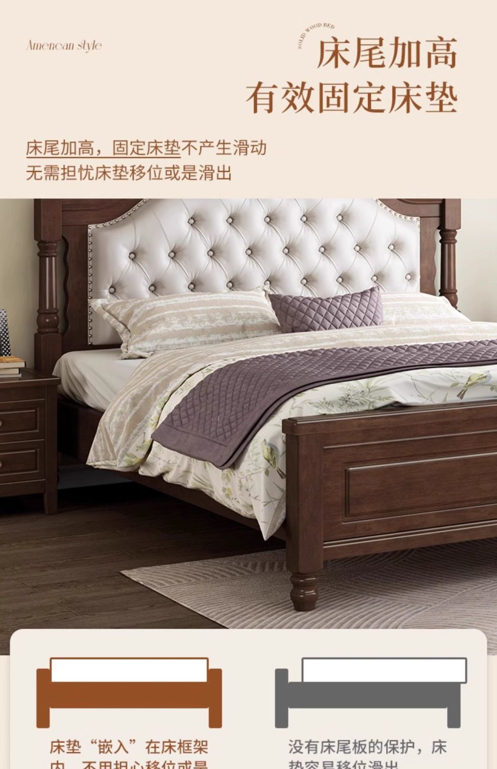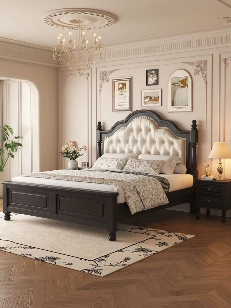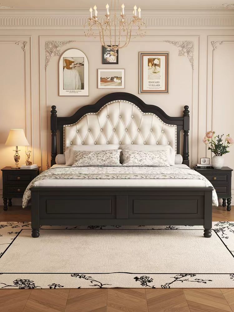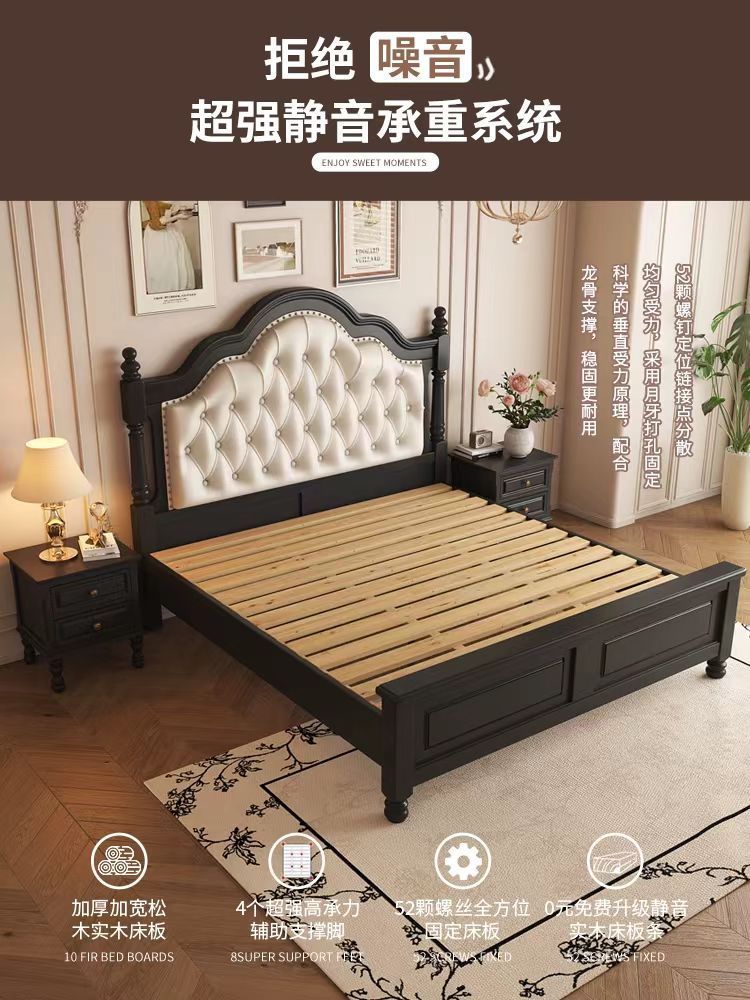 アメリカレトロ実木ベッドフランス田園風主臥ダブルベッド現代シンプル中古風民宿ソフトベッド