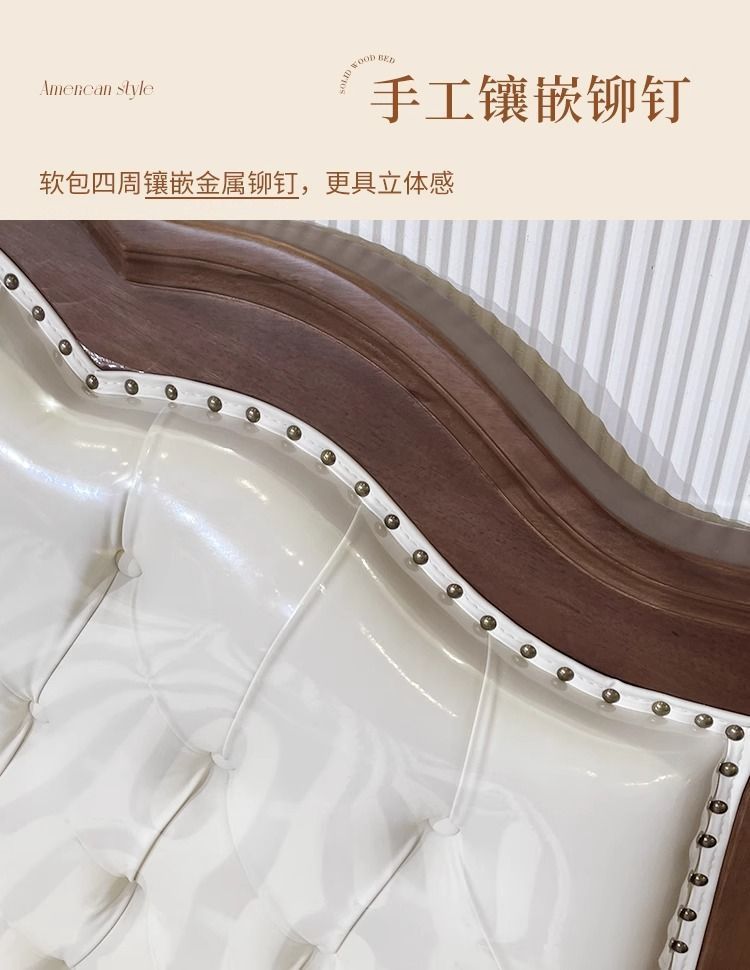 法式复古风全实木床中古风软包床美式储物双人婚床主卧白腊木大床