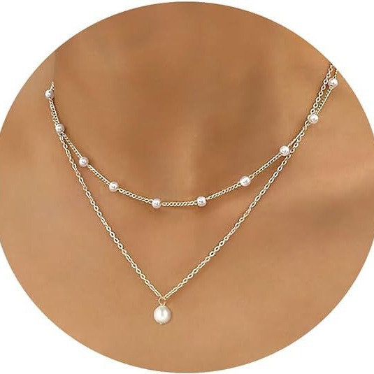 欧米の越境真珠の愛のネックレスは真珠の多層のペンダントの鎖の女性の復古の多層の重ねてネックレスをつけます。