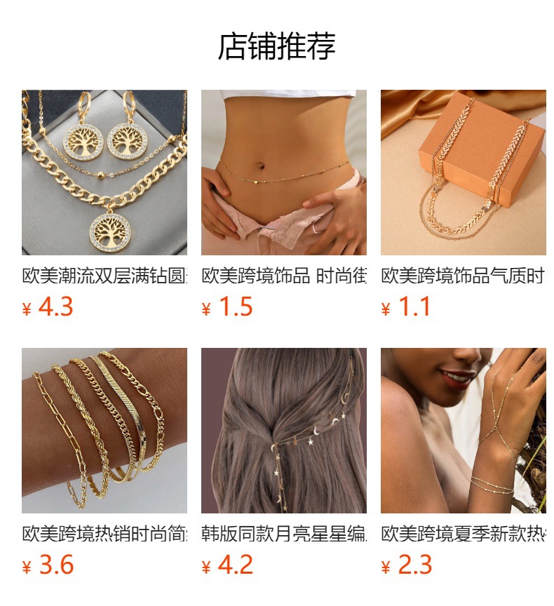 欧米のクロスボーダーの装飾品のファッションは5角星の三日月のペンダントを入れて多層に重ねてネックレスの個性の鎖の鎖のネックレスをつけます。